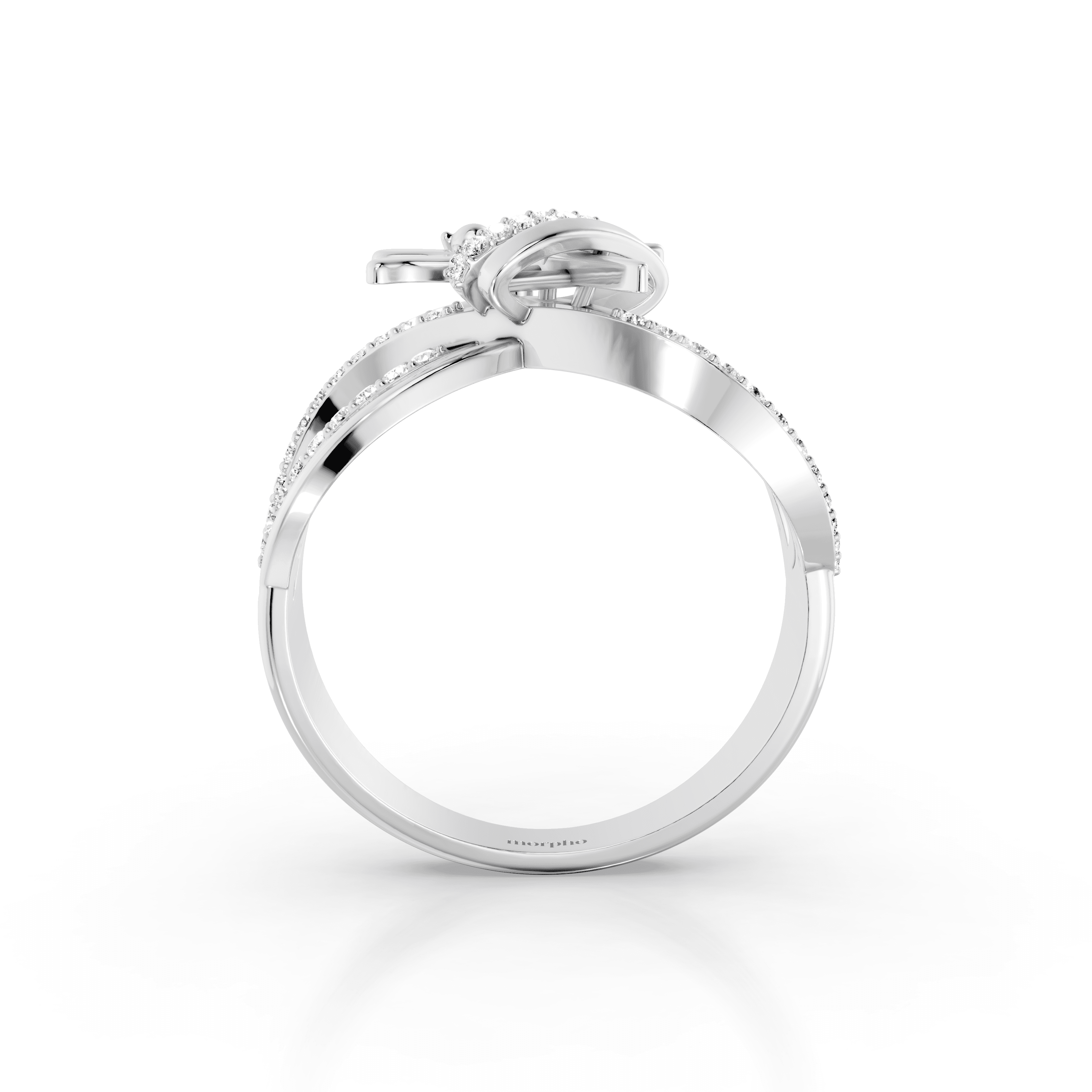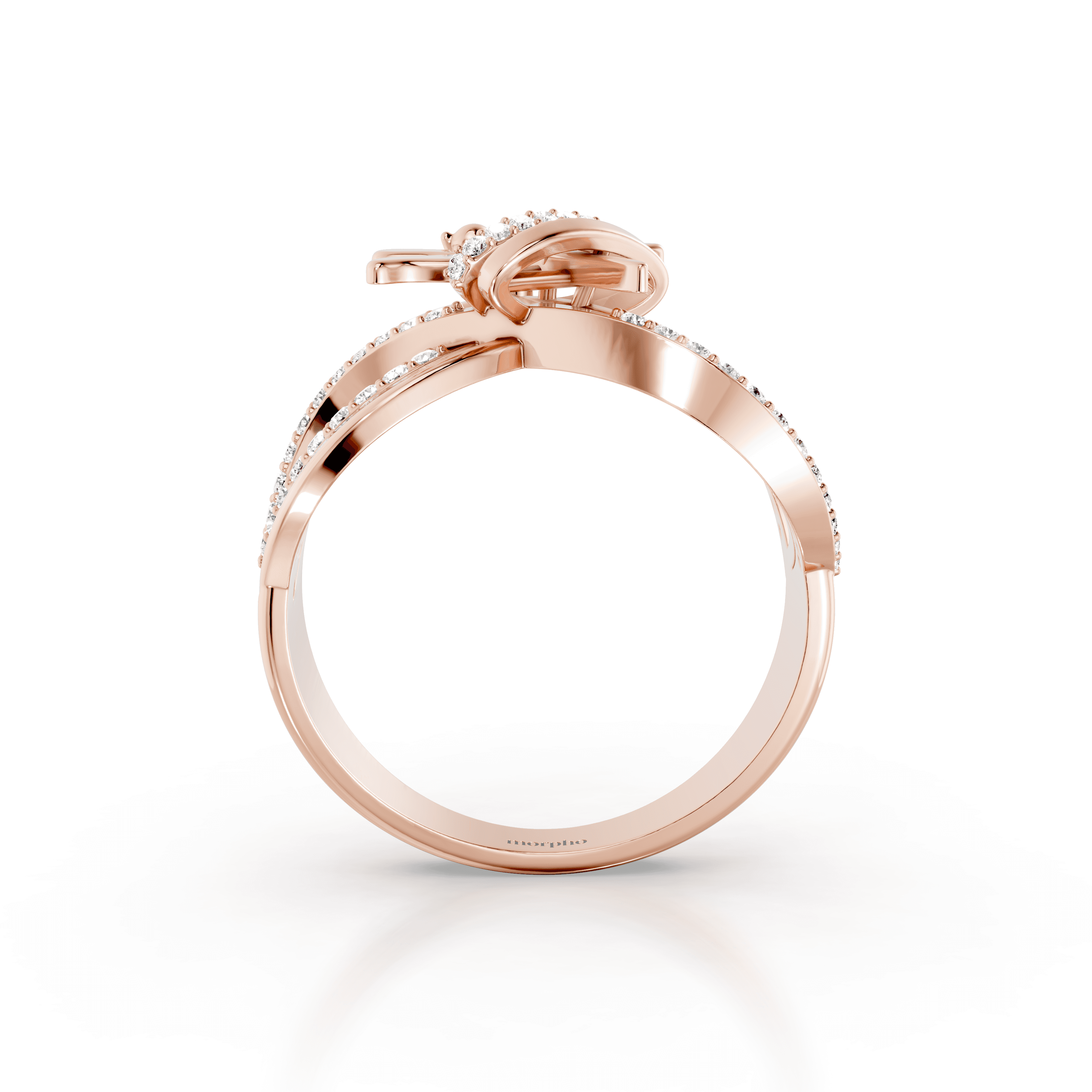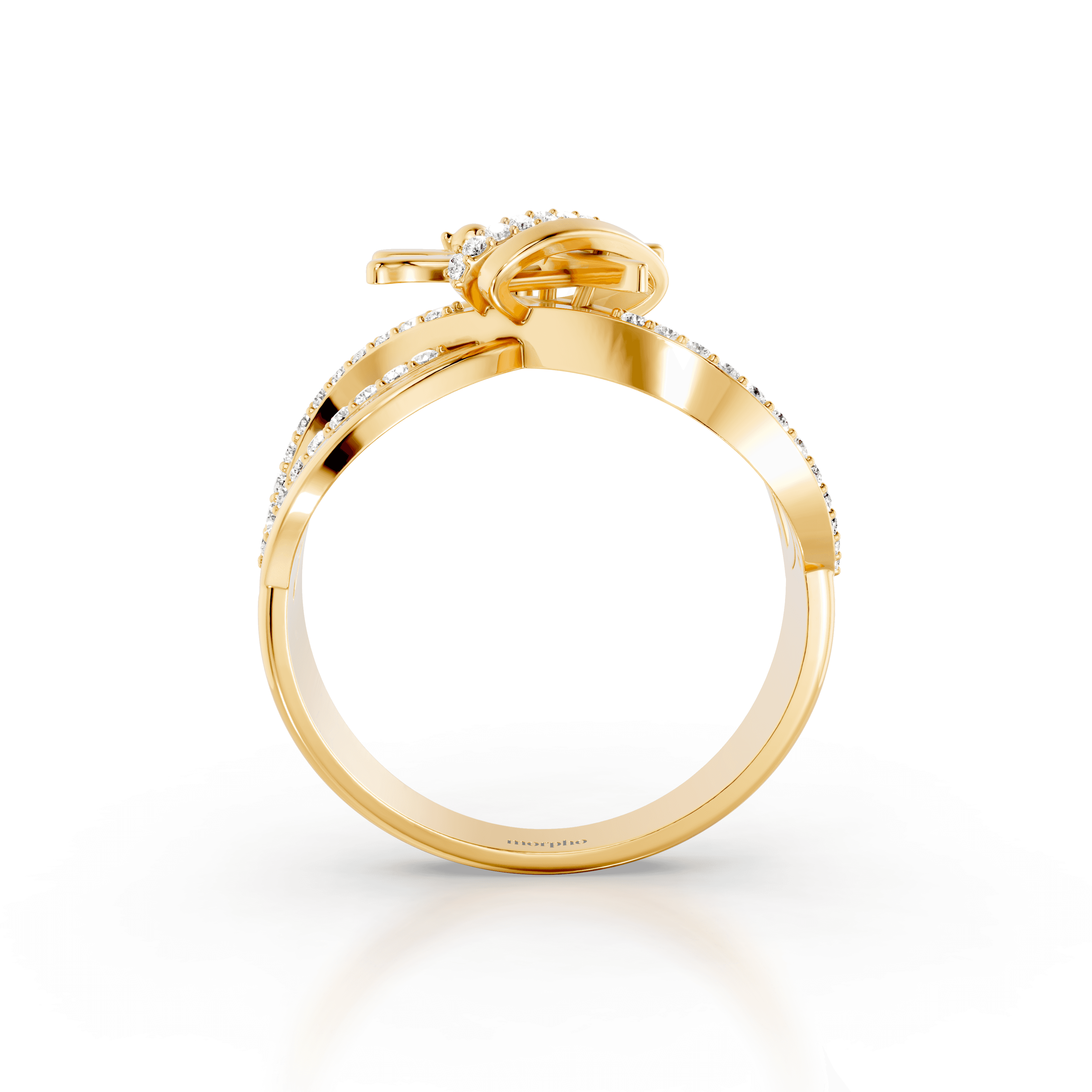 Multi-band cocktail ring with intertwining polished gold loops, pavé diamond accents, and a sculptural dragonfly motif designed for dimensional, statement wear.