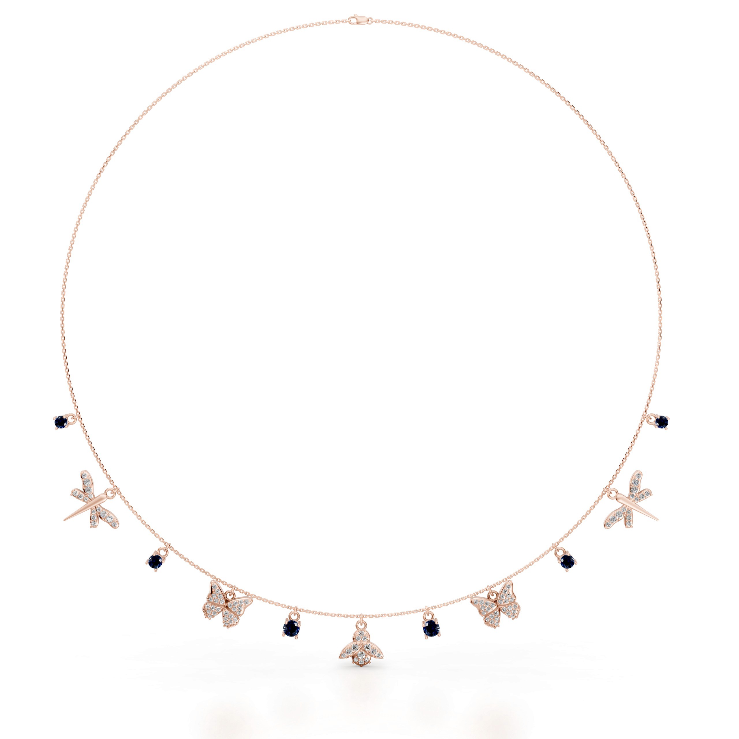 Fine chain with alternating butterfly, ladybug, dragonfly and sapphire charms