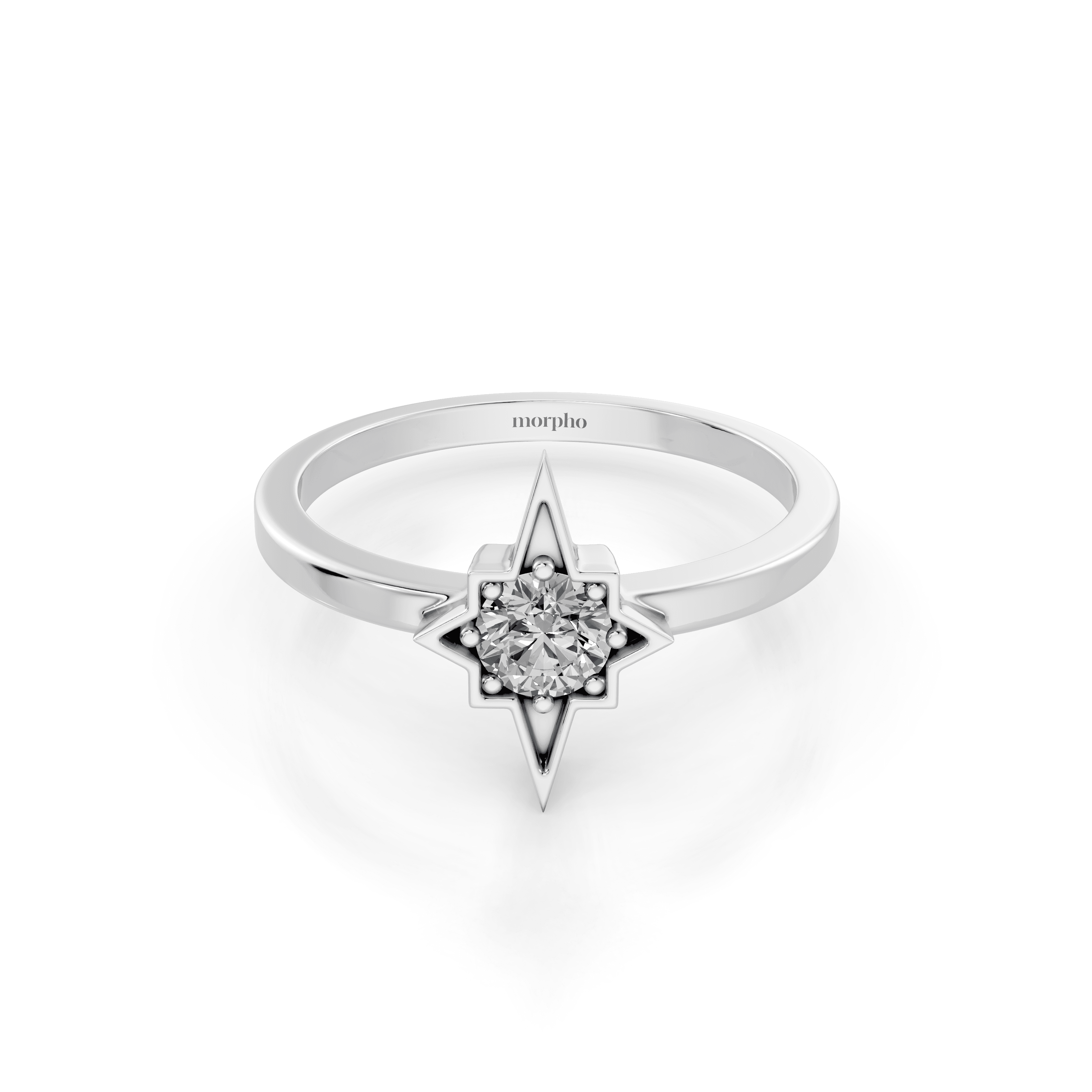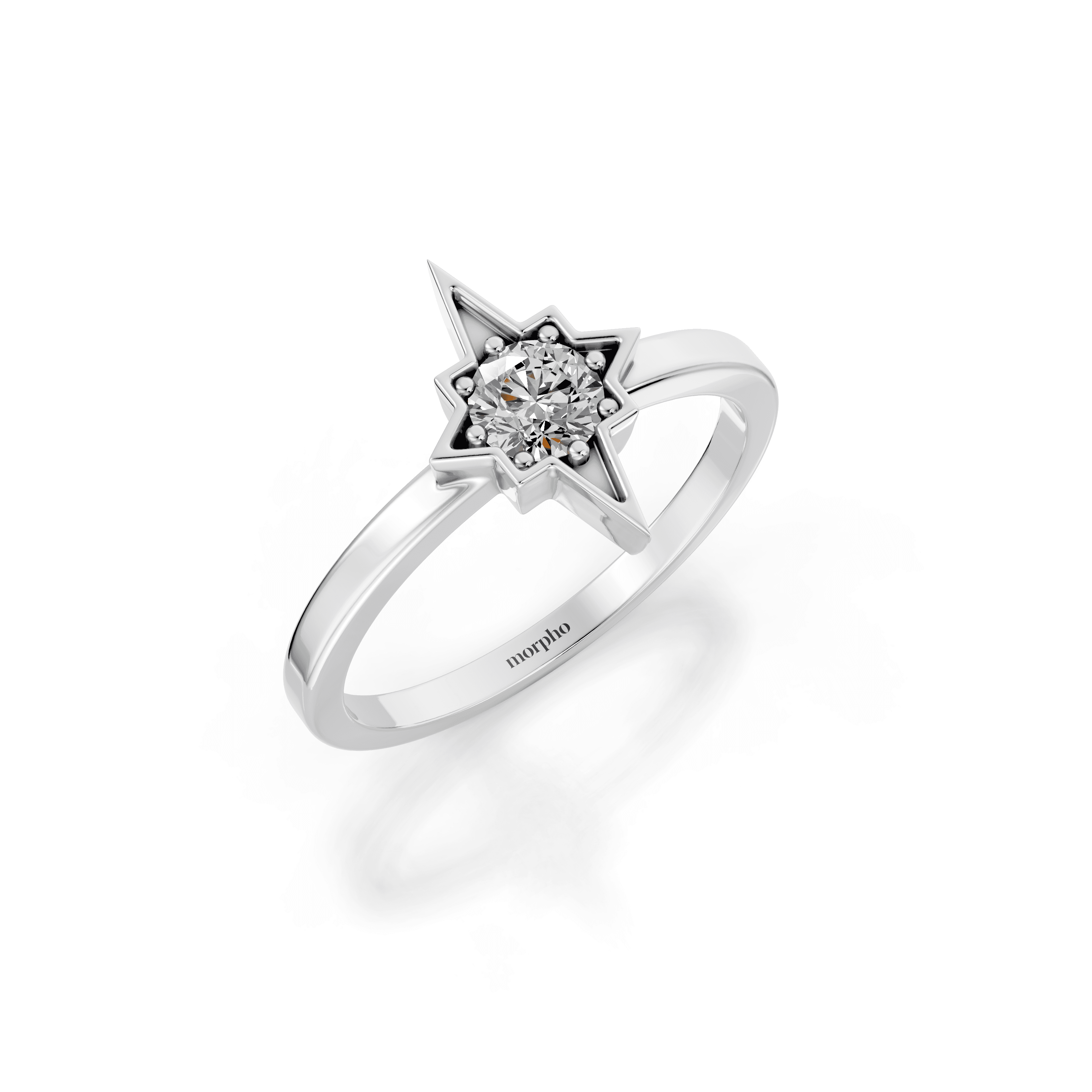 Stackable ring centred with an eight-pointed star motif featuring a bezel-set diamond.