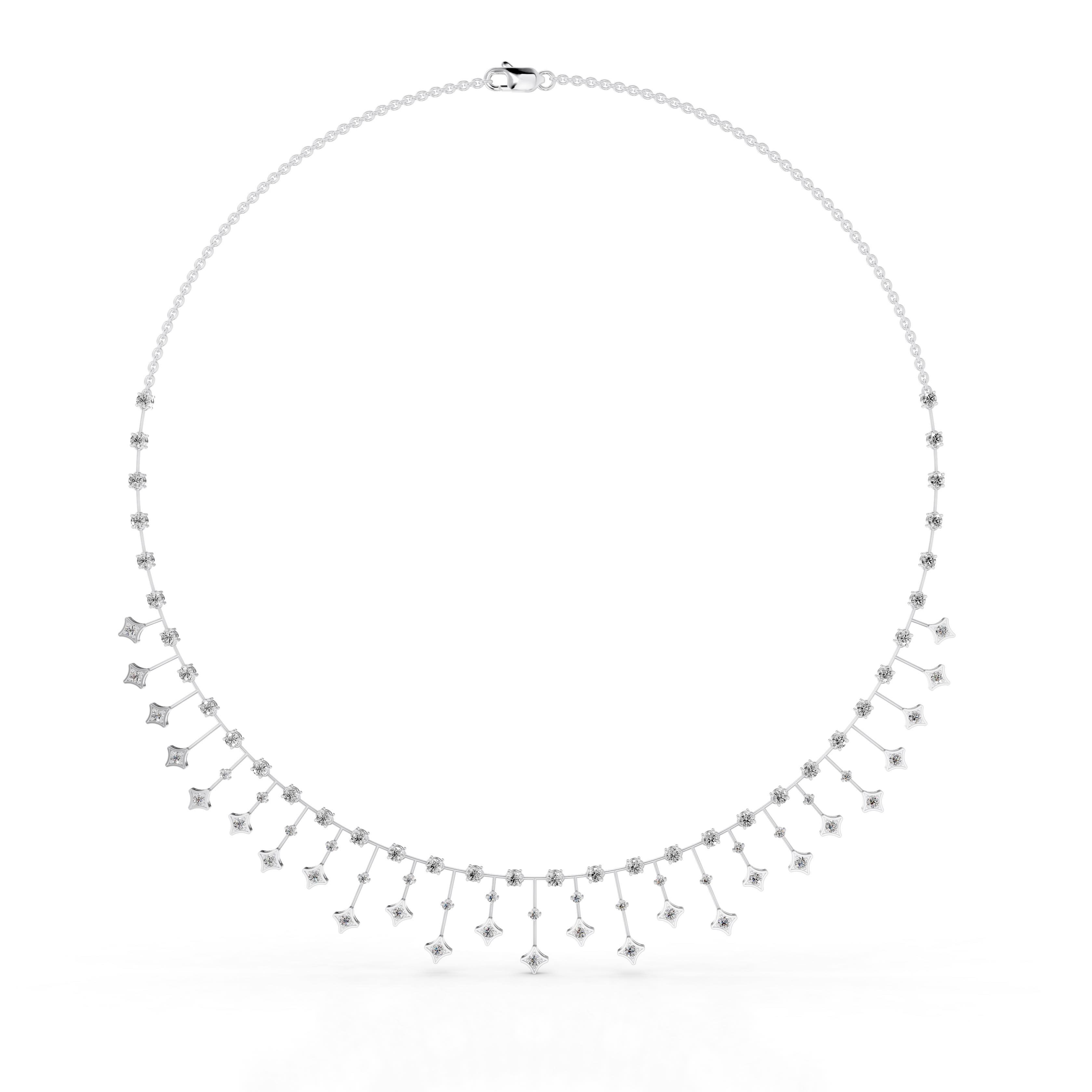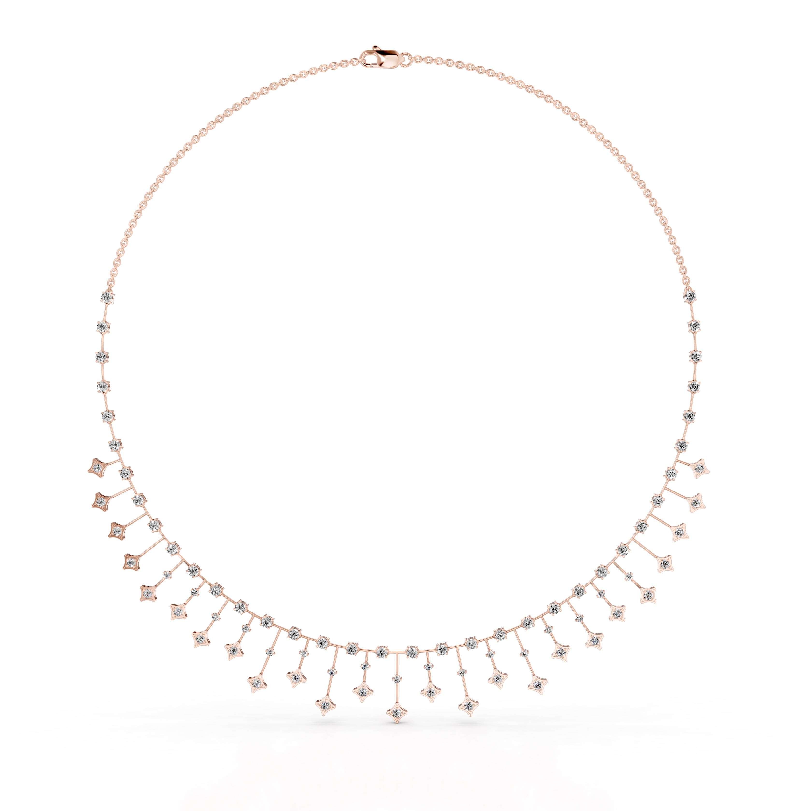 Flexible collarbone necklace with graduated diamond-set star drops arranged in a soft U-shaped silhouette.