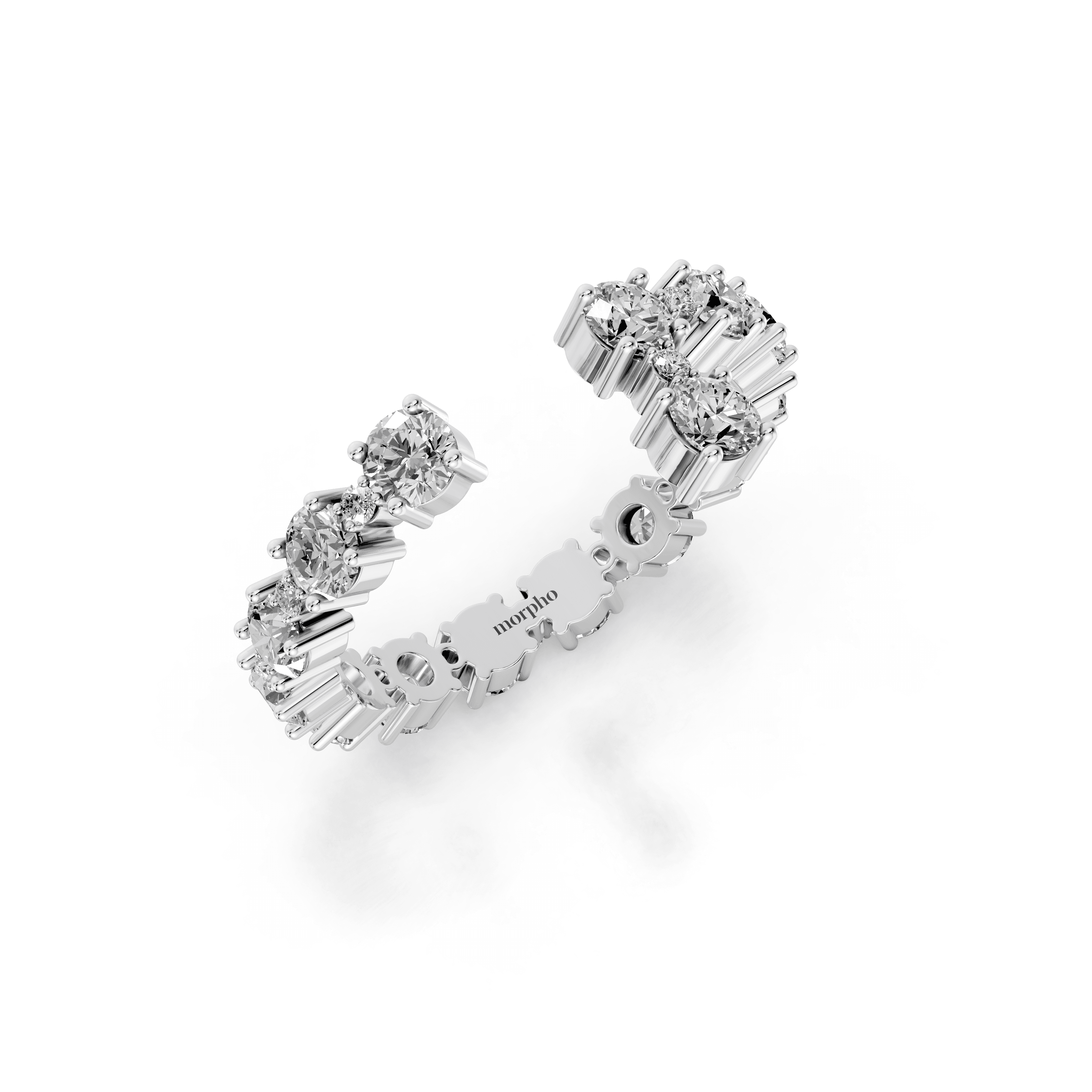 A dramatic eternity band with raised round diamonds for heightened brilliance and dimension.