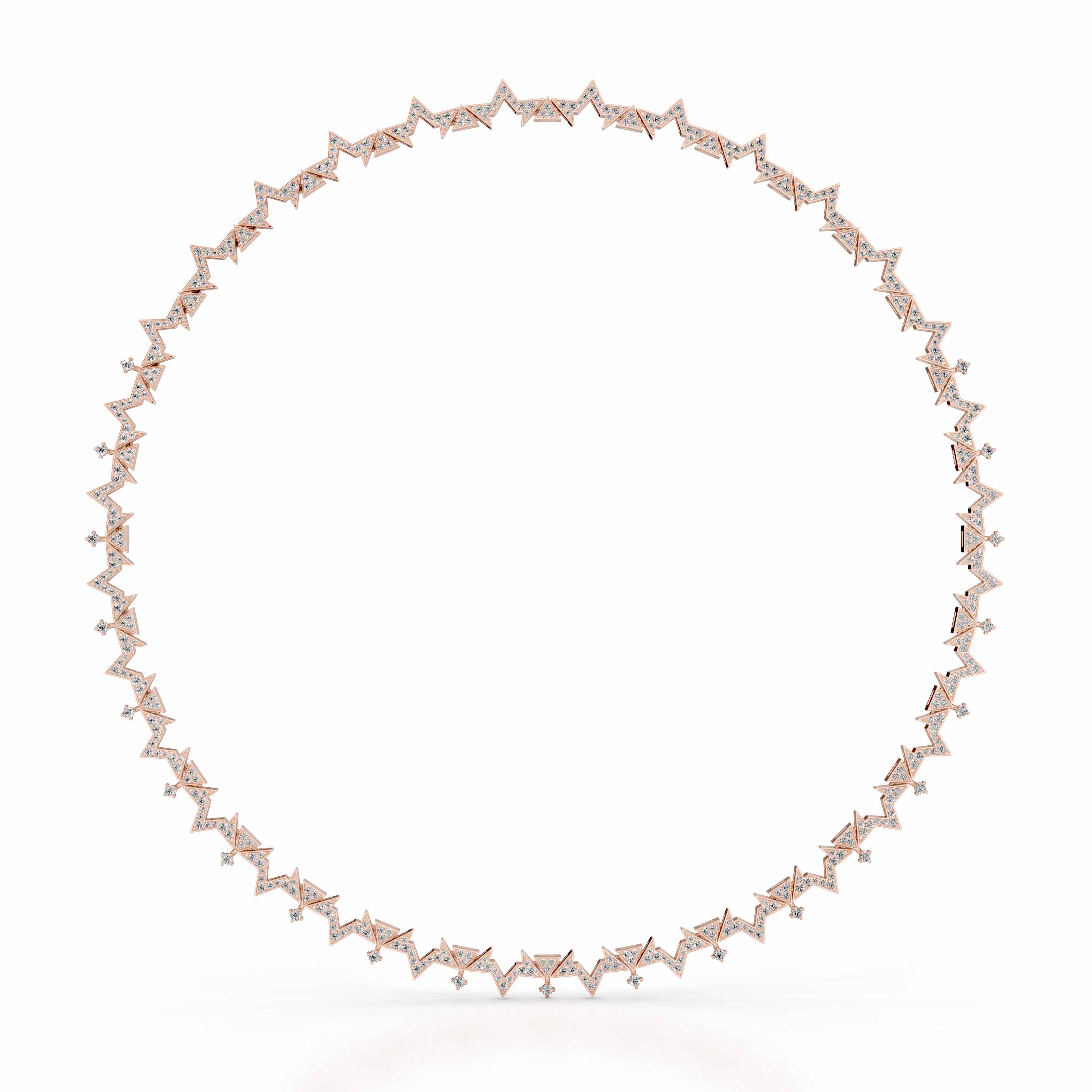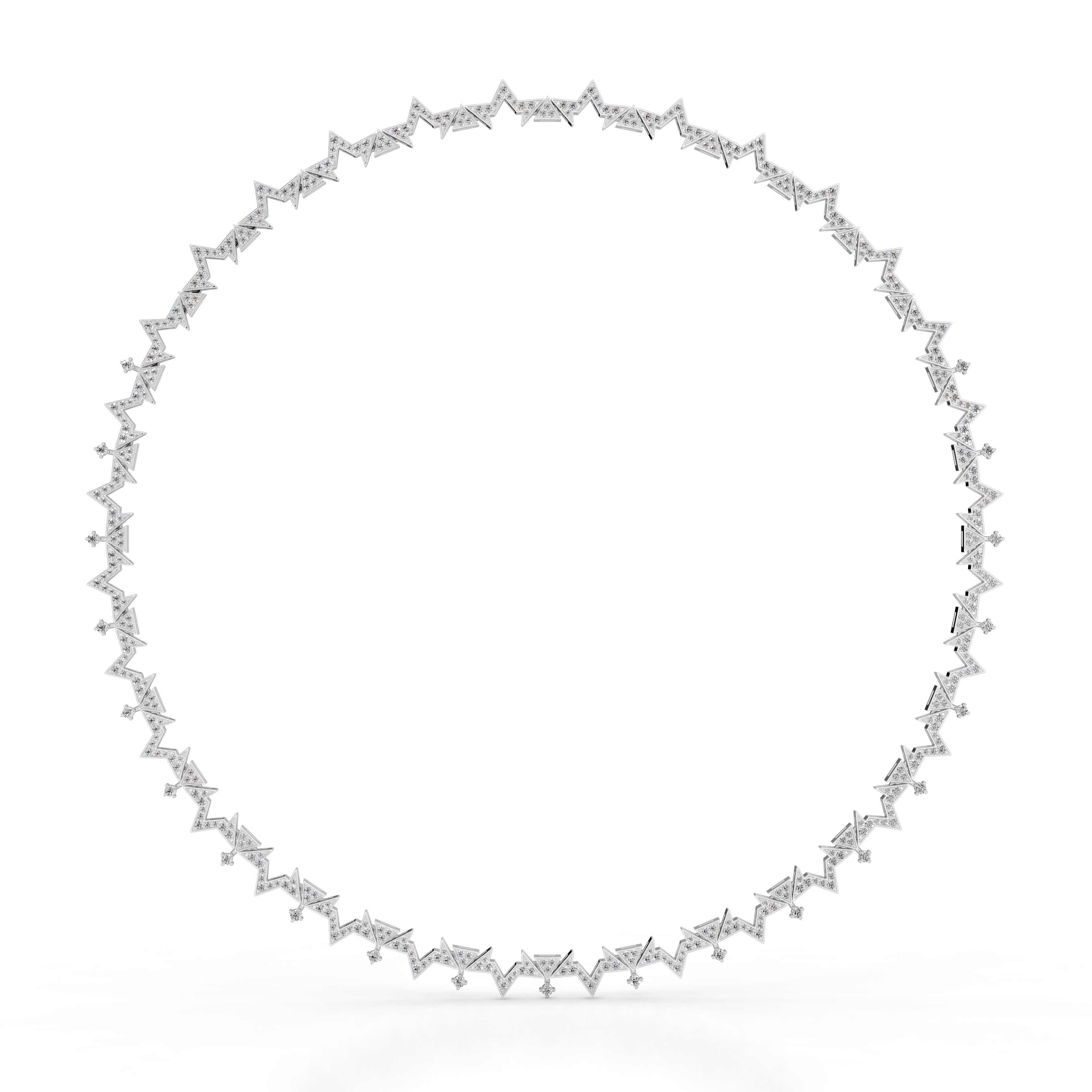 Semi-stiff U-shaped collarbone necklace with continuous pavé diamonds forming a jagged linear silhouette.