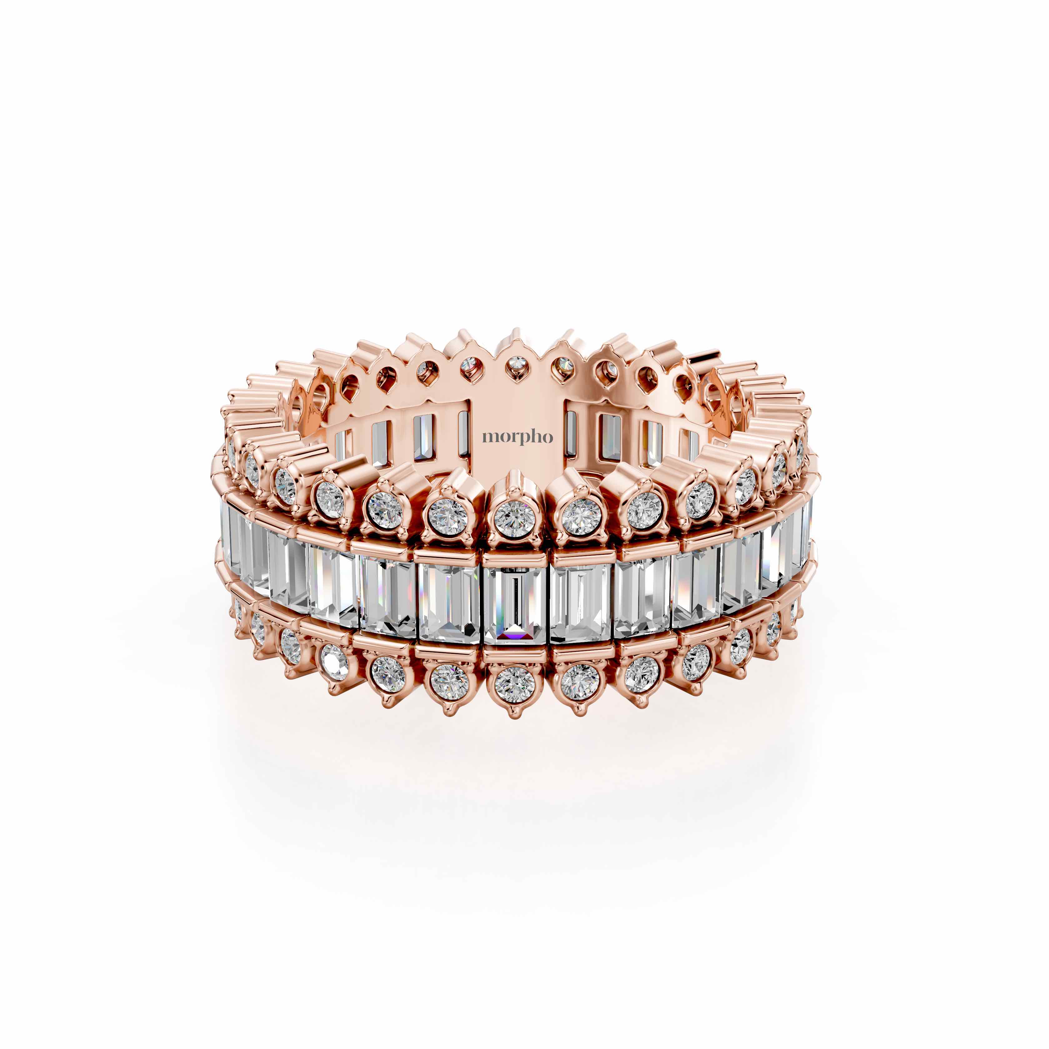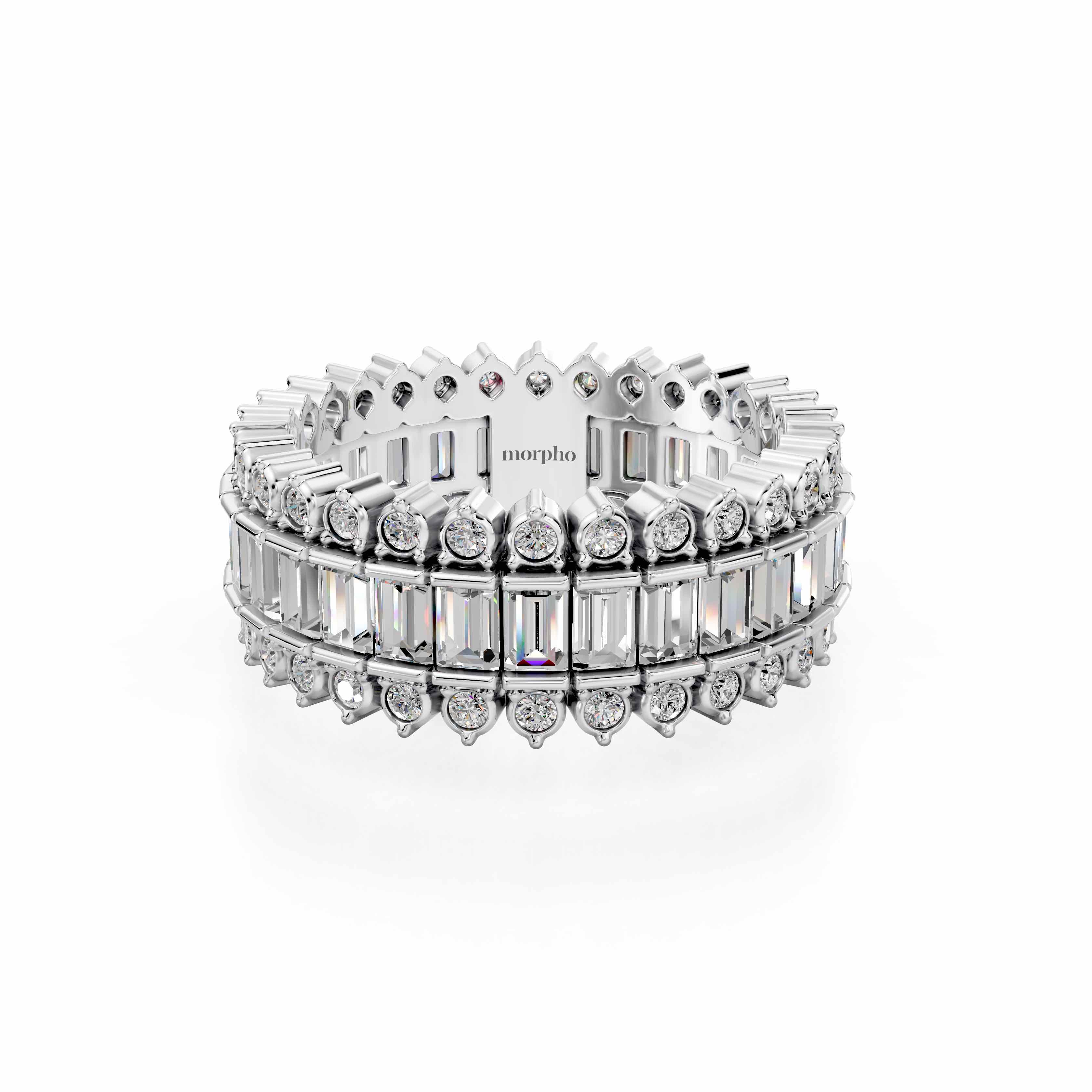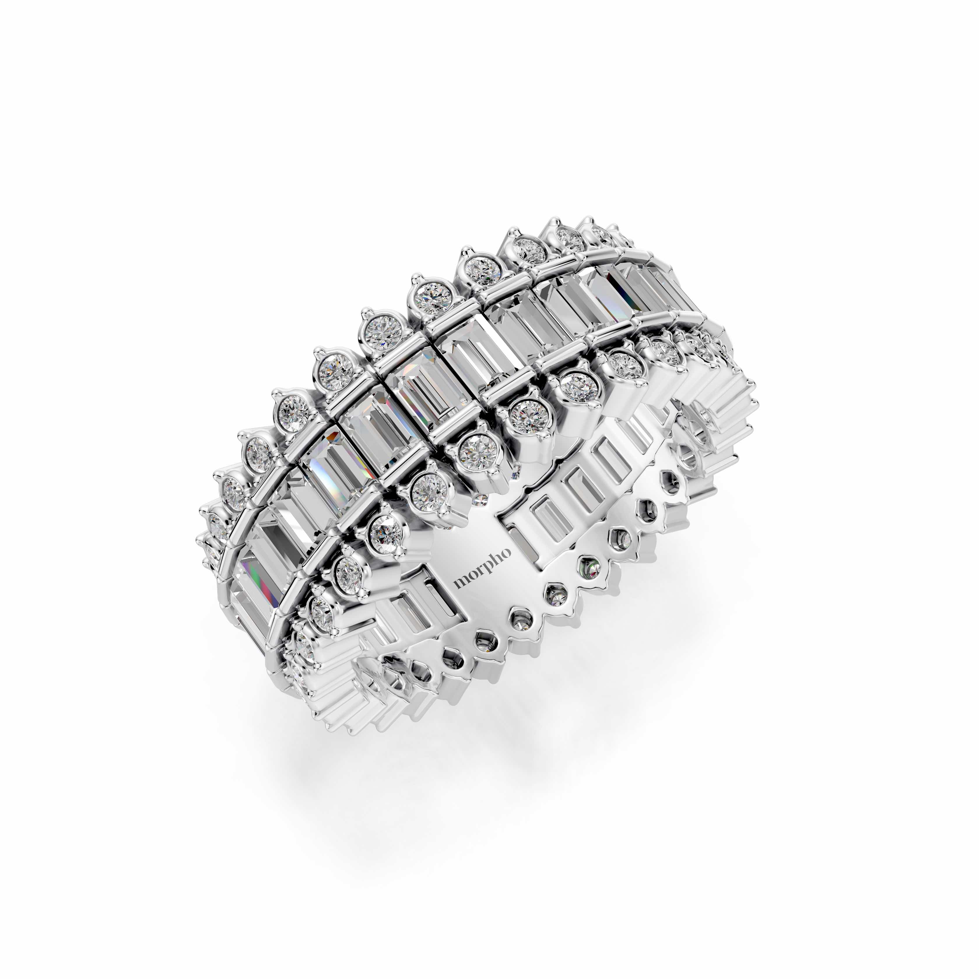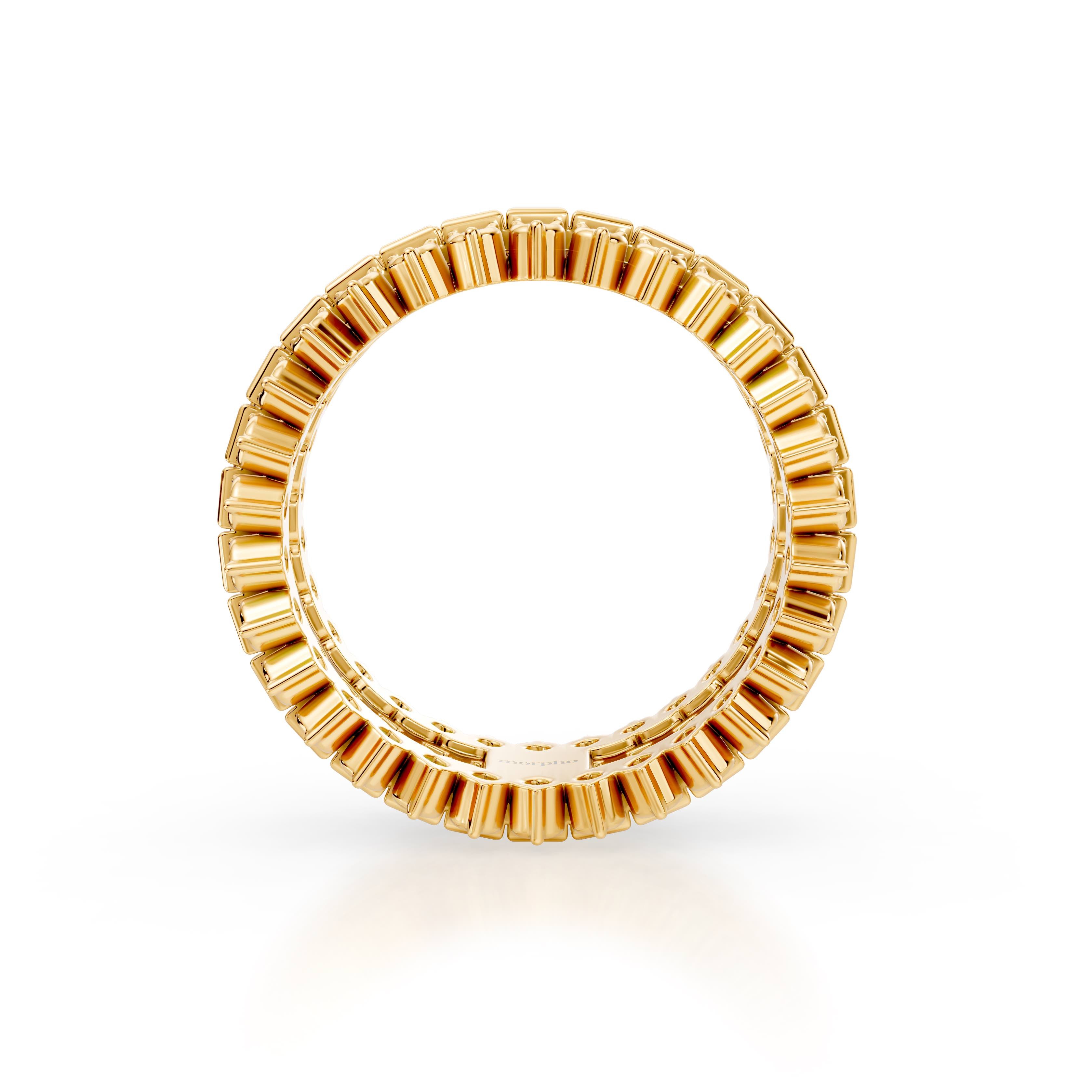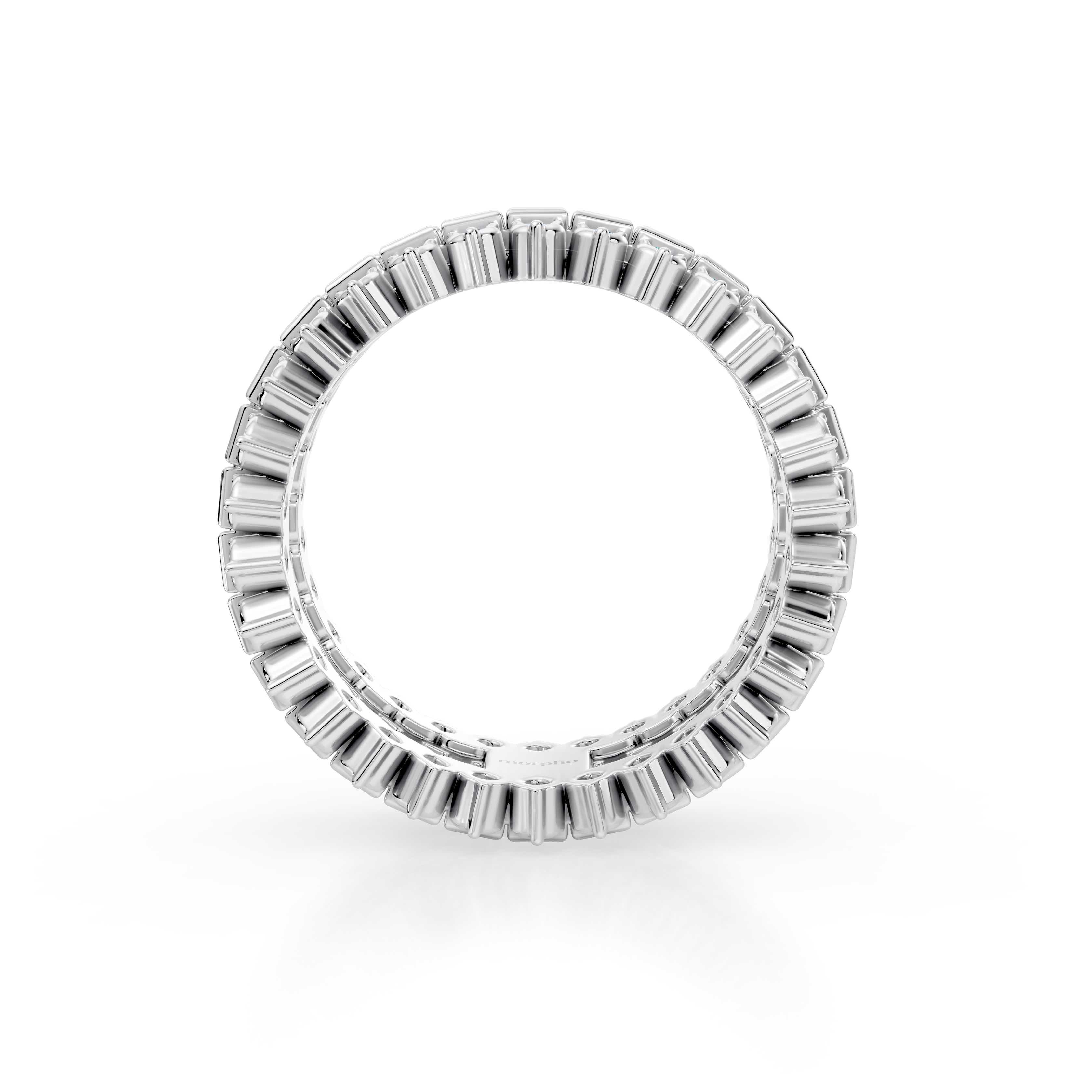 Full eternity band with parallel-set round and baguette diamonds in Off-Record style.