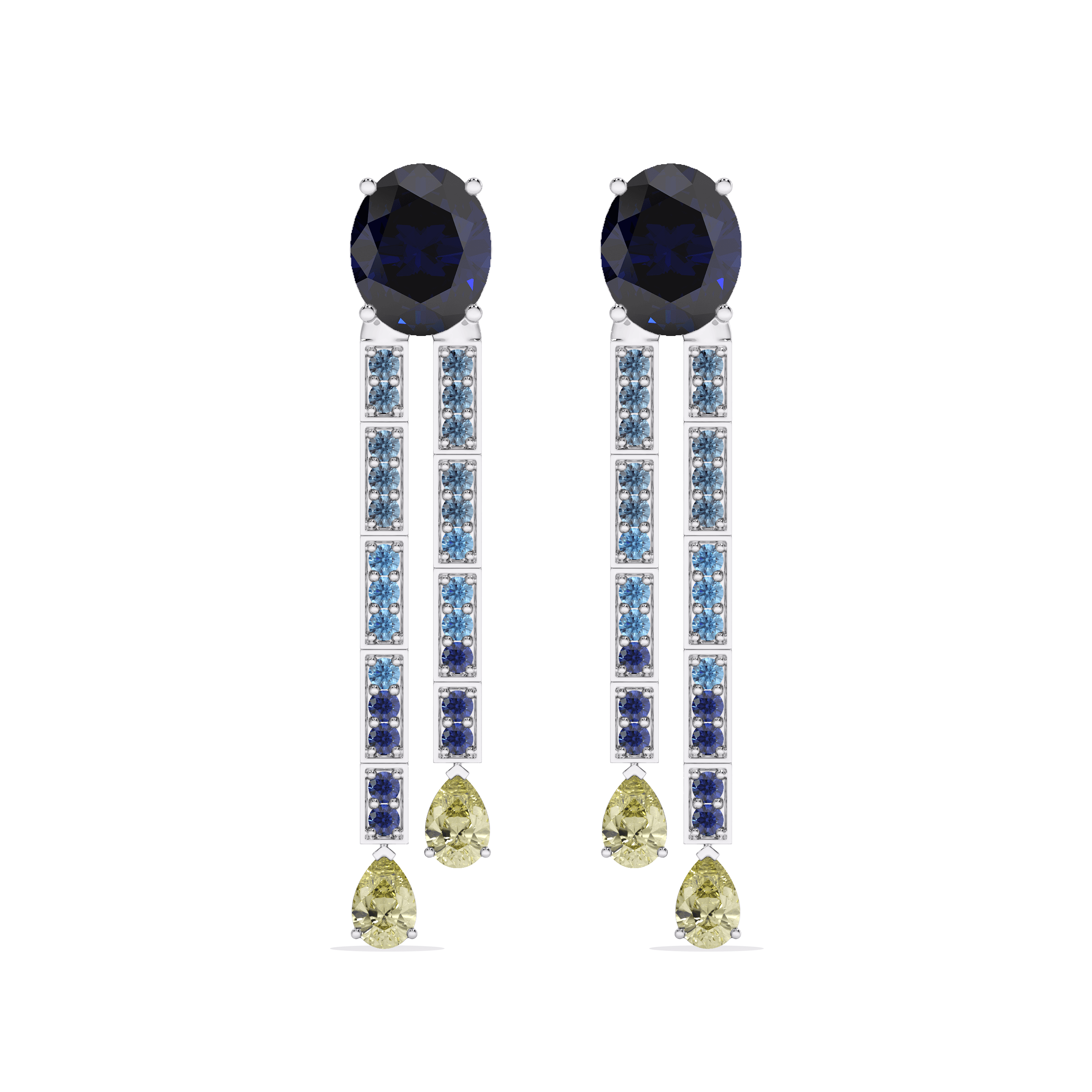 12.730ctw ctw of round-cut dark blue, light blue and sky blue Topaz, pear-cut drops of yellow Imperial Topaz and an oval-cut natural Blue Sapphire