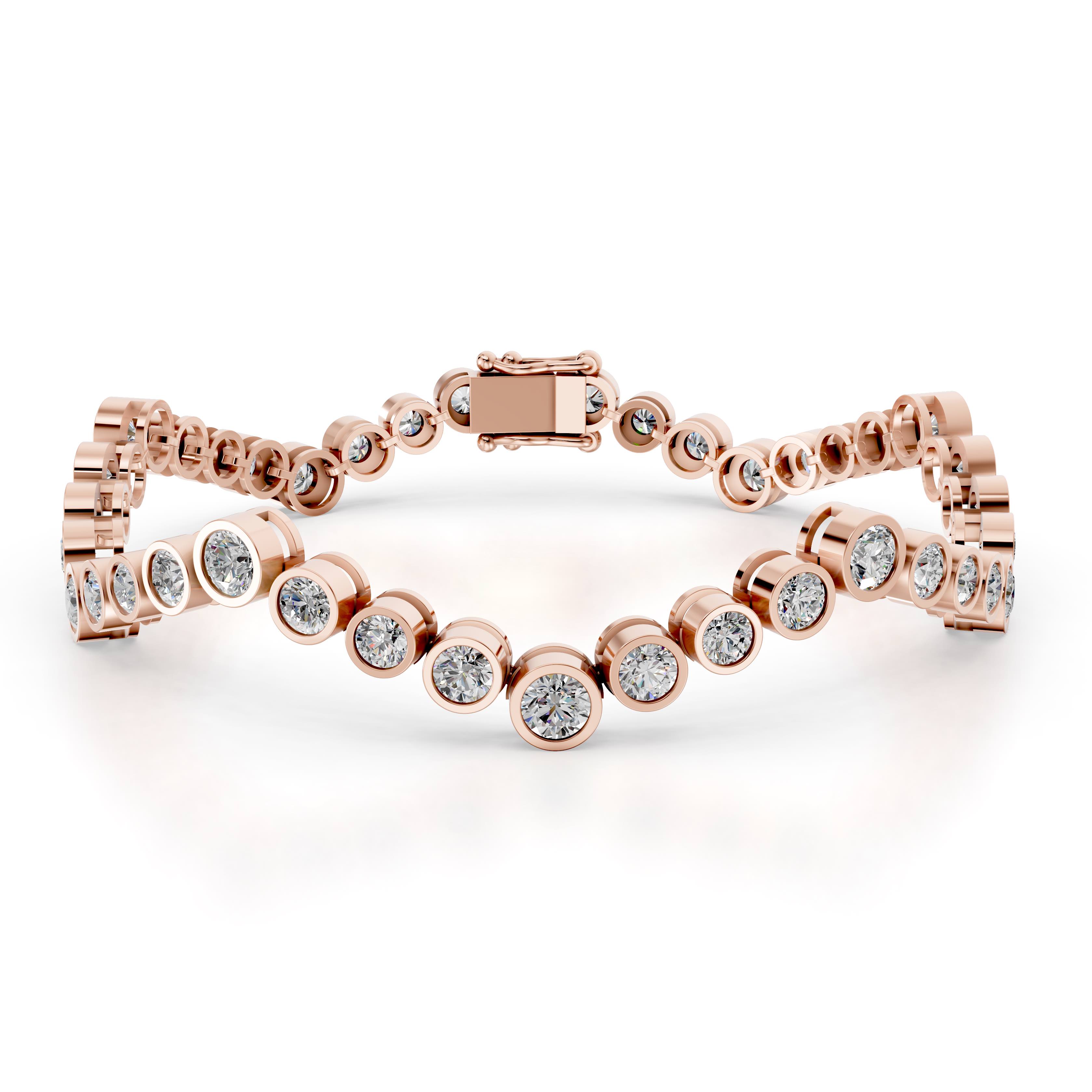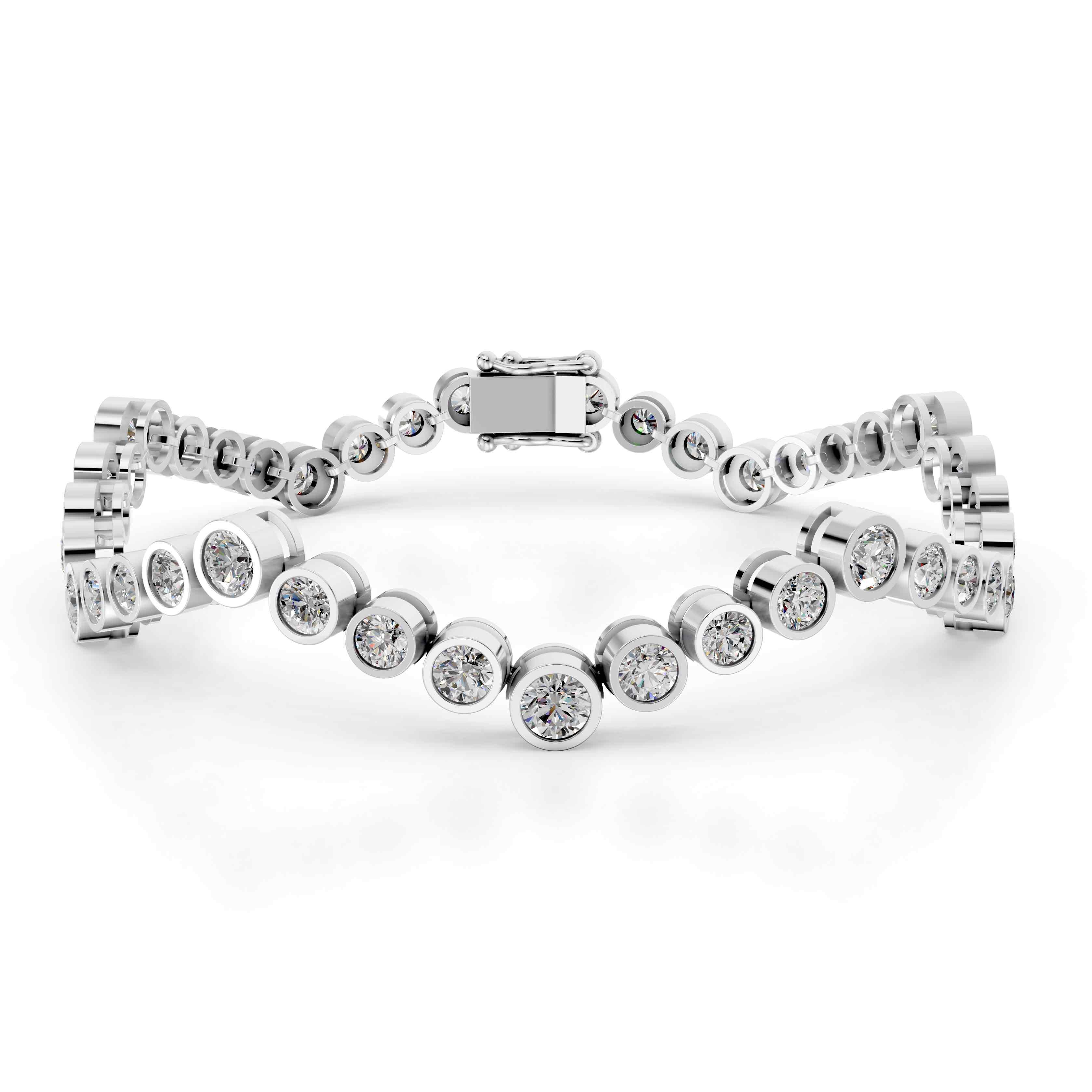 Diamond line bracelet with bezel-set rounds in wave form graduated sequence.