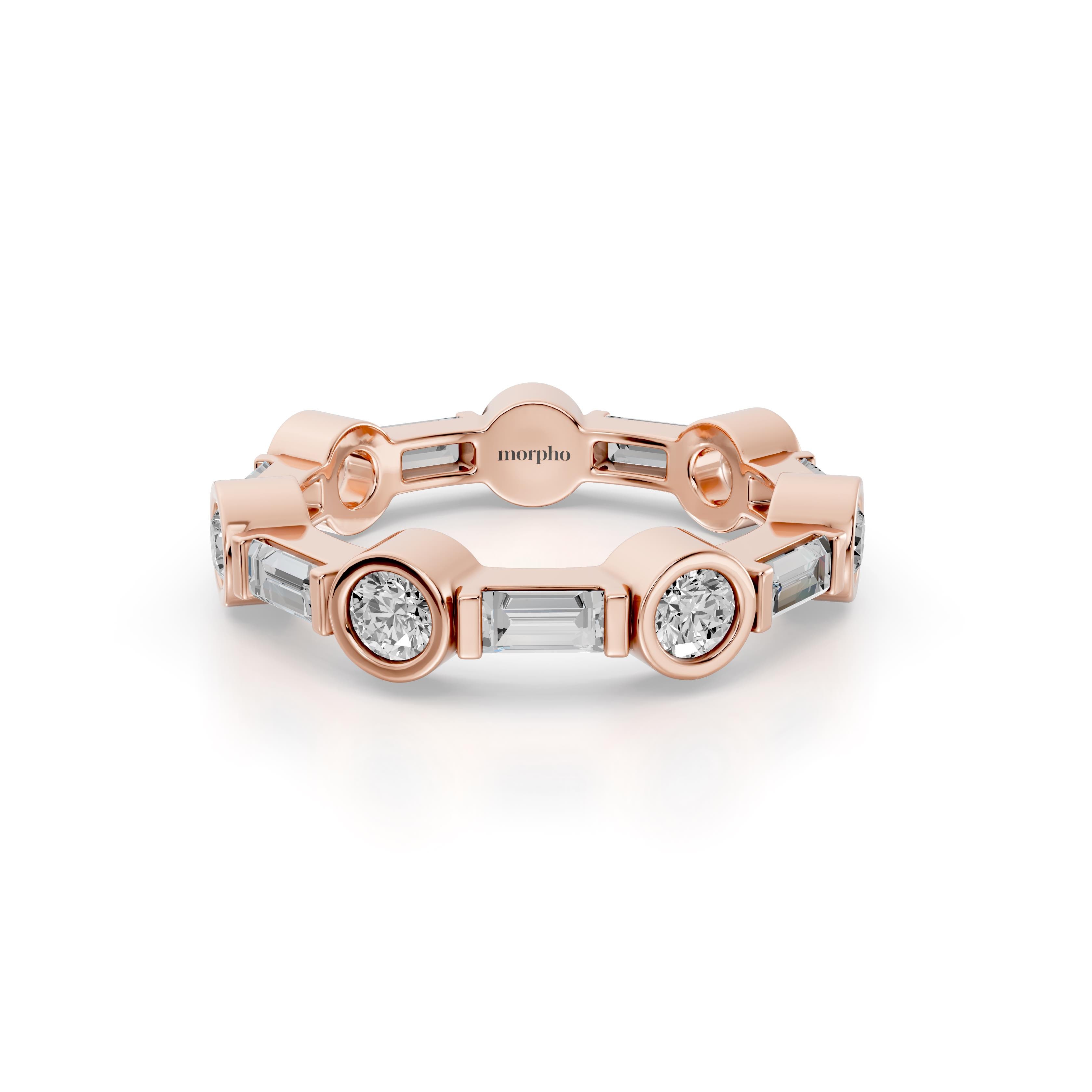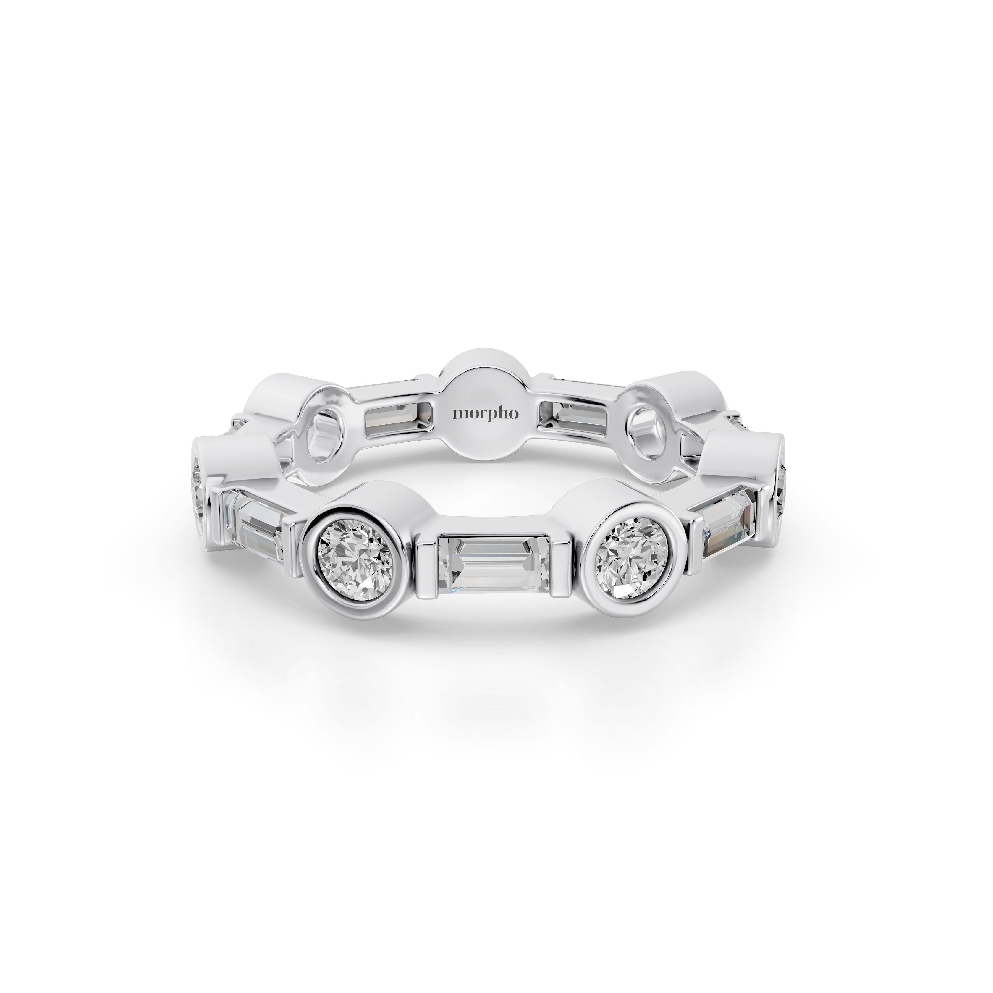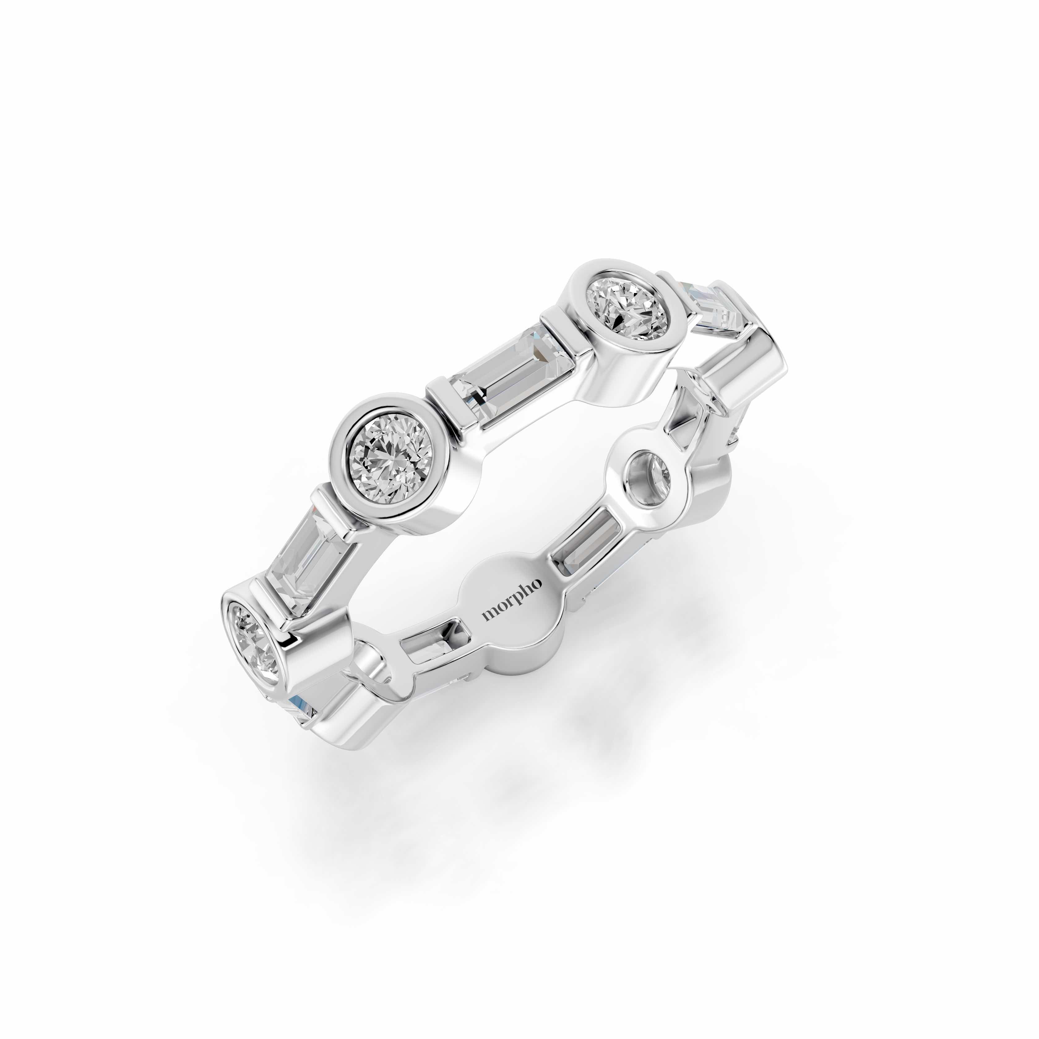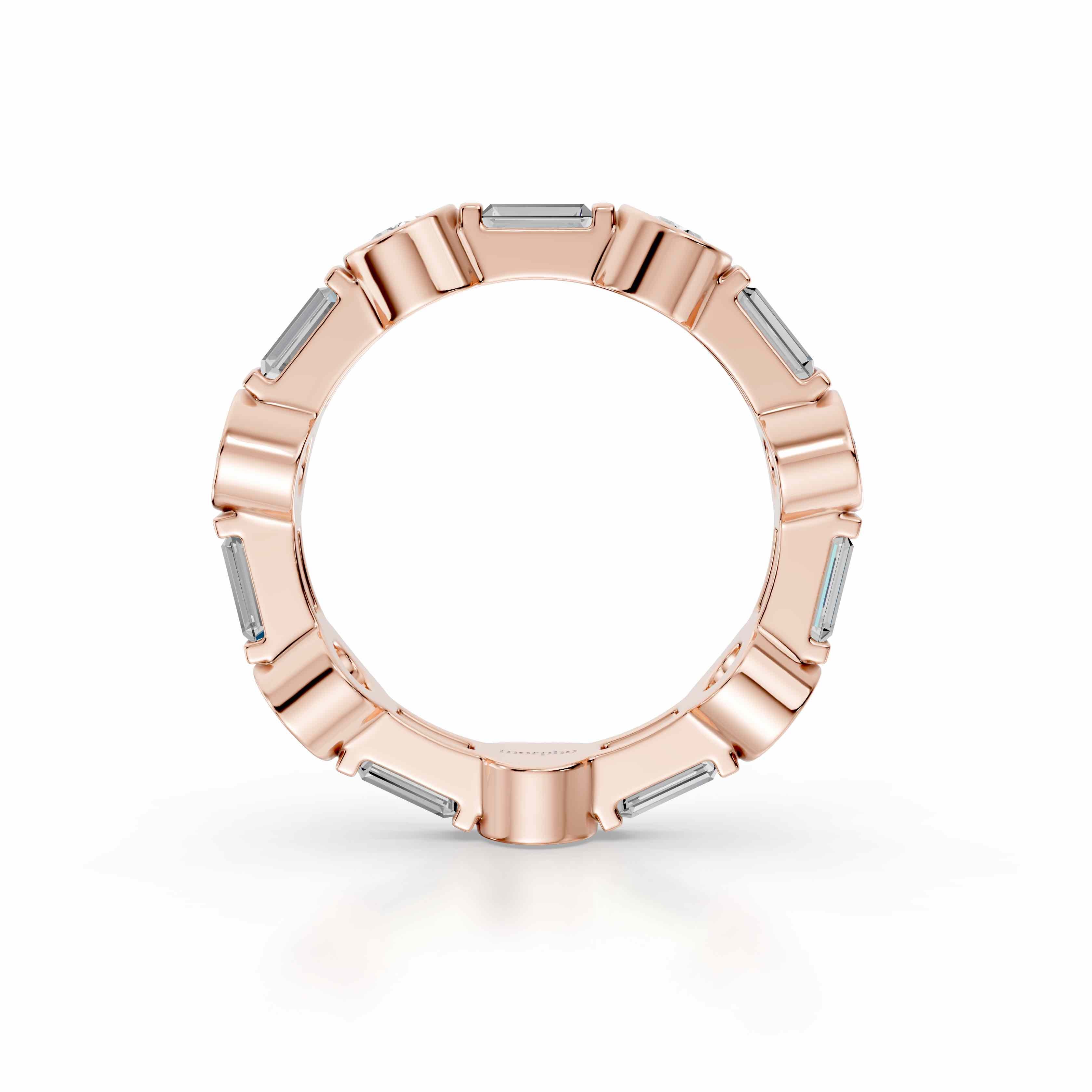 Full eternity band with alternating bezel rounds and bar-set baguettes.