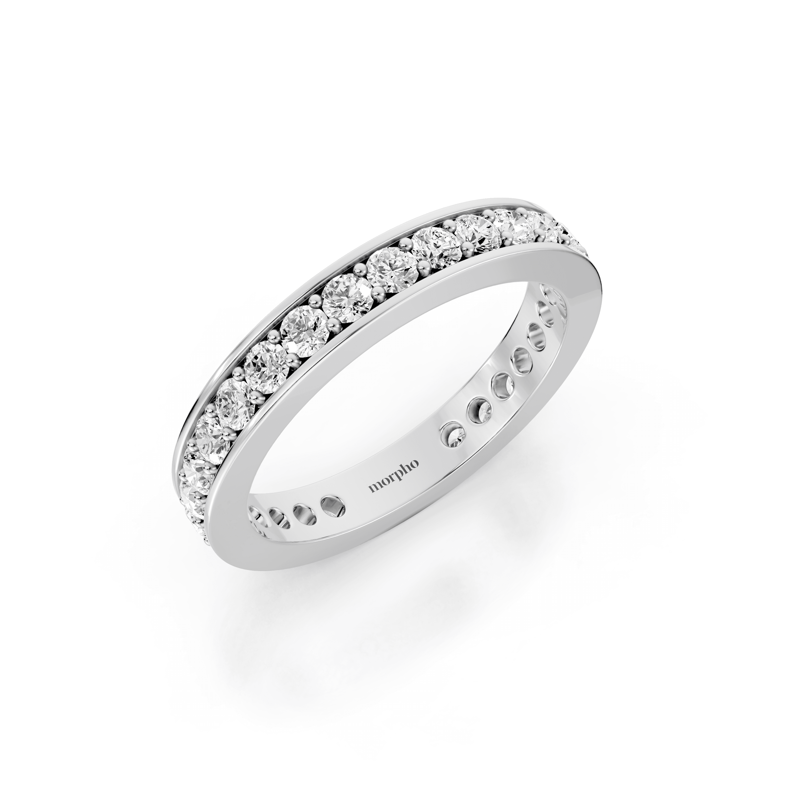 Low-profile pavé diamond band with continuous micro-set round diamonds along the top surface.