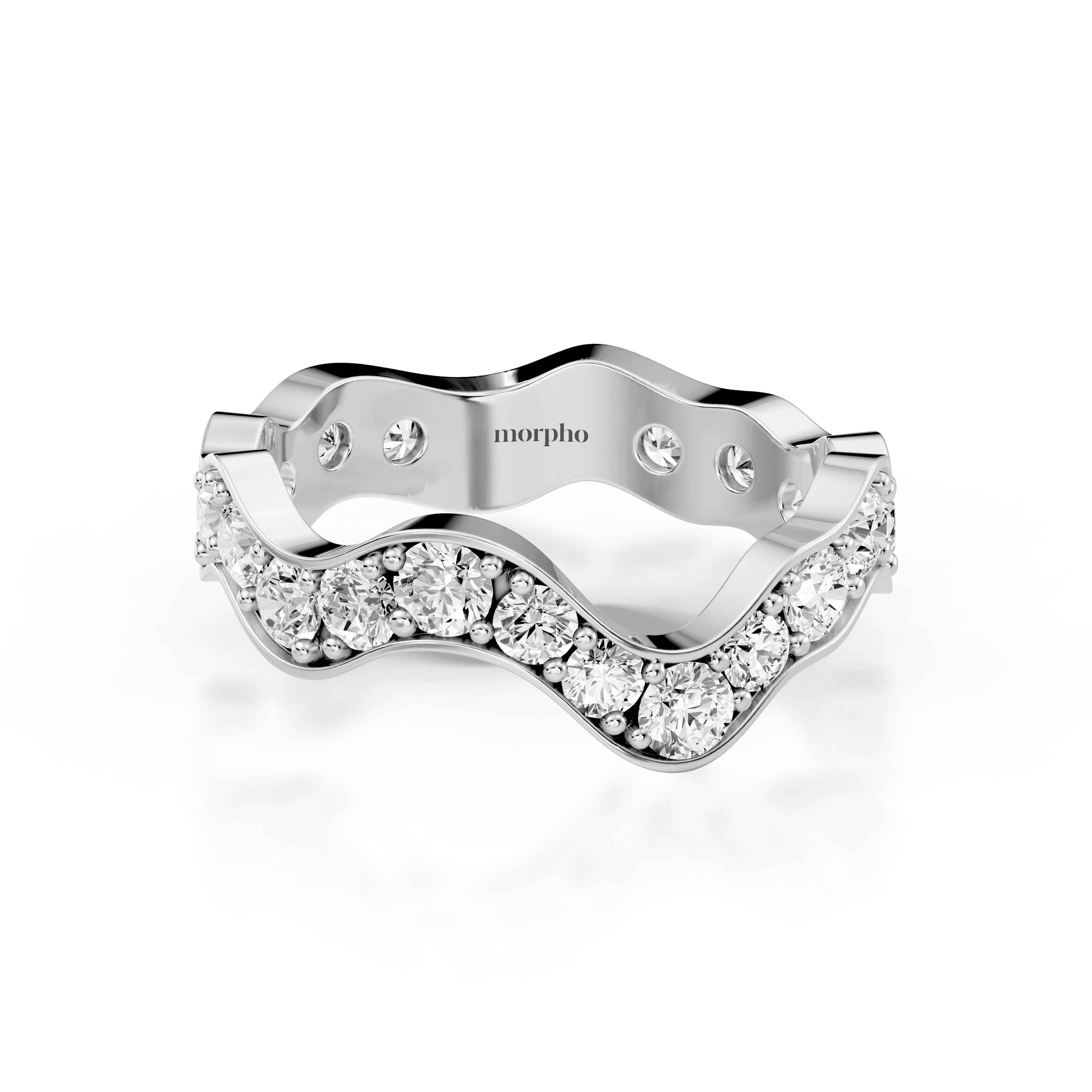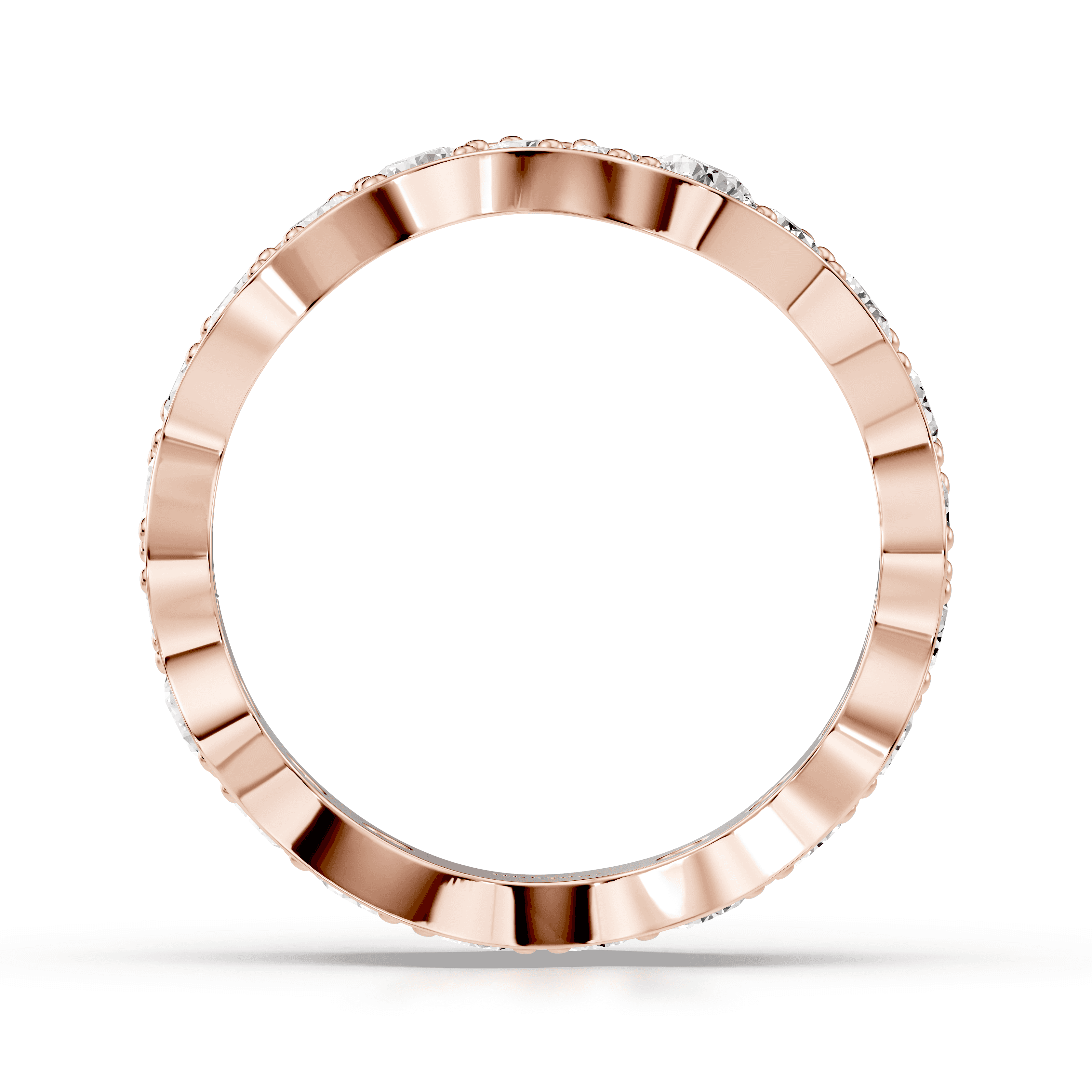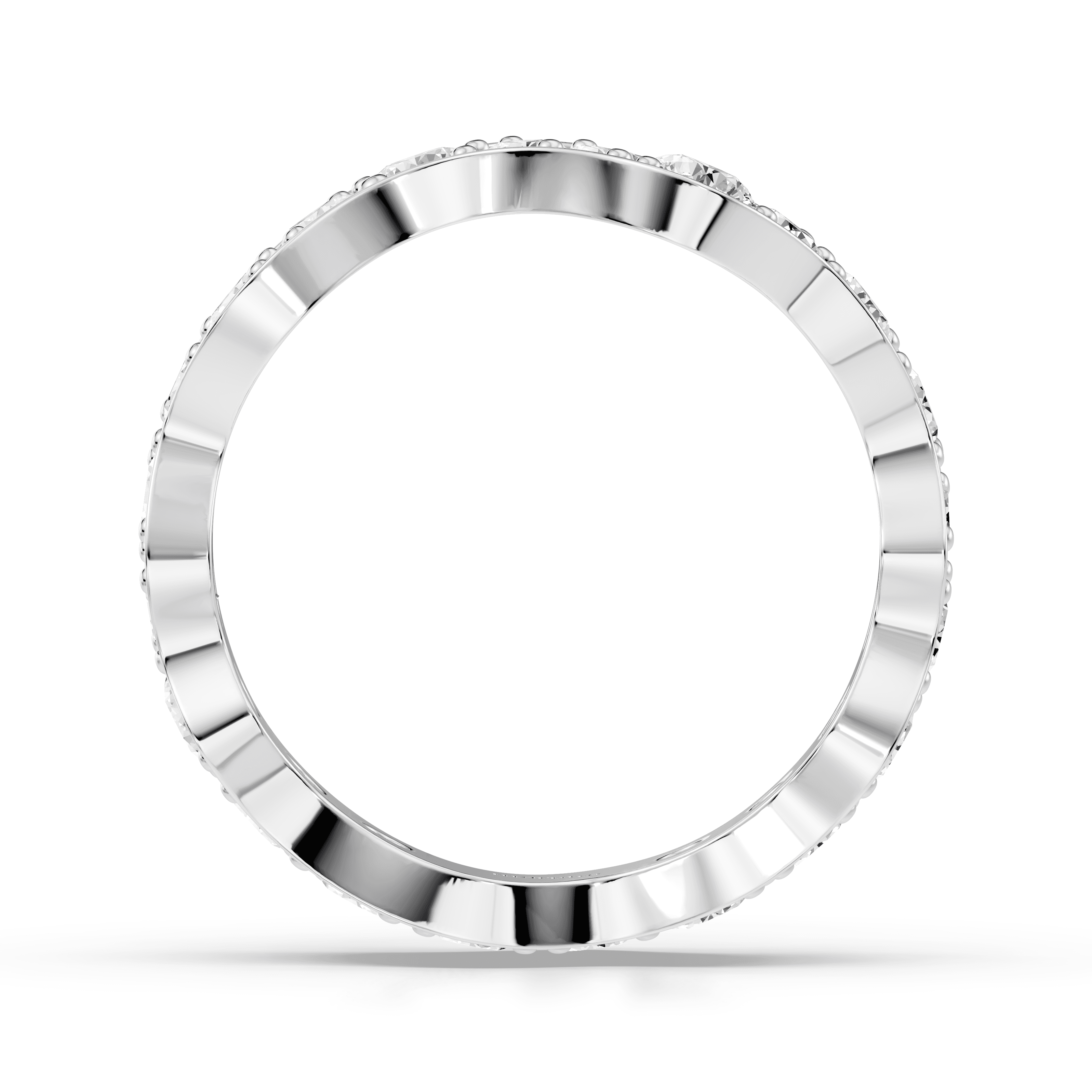 Low-profile stackable ring with full pavé-set round diamonds following a continuous curved silhouette.