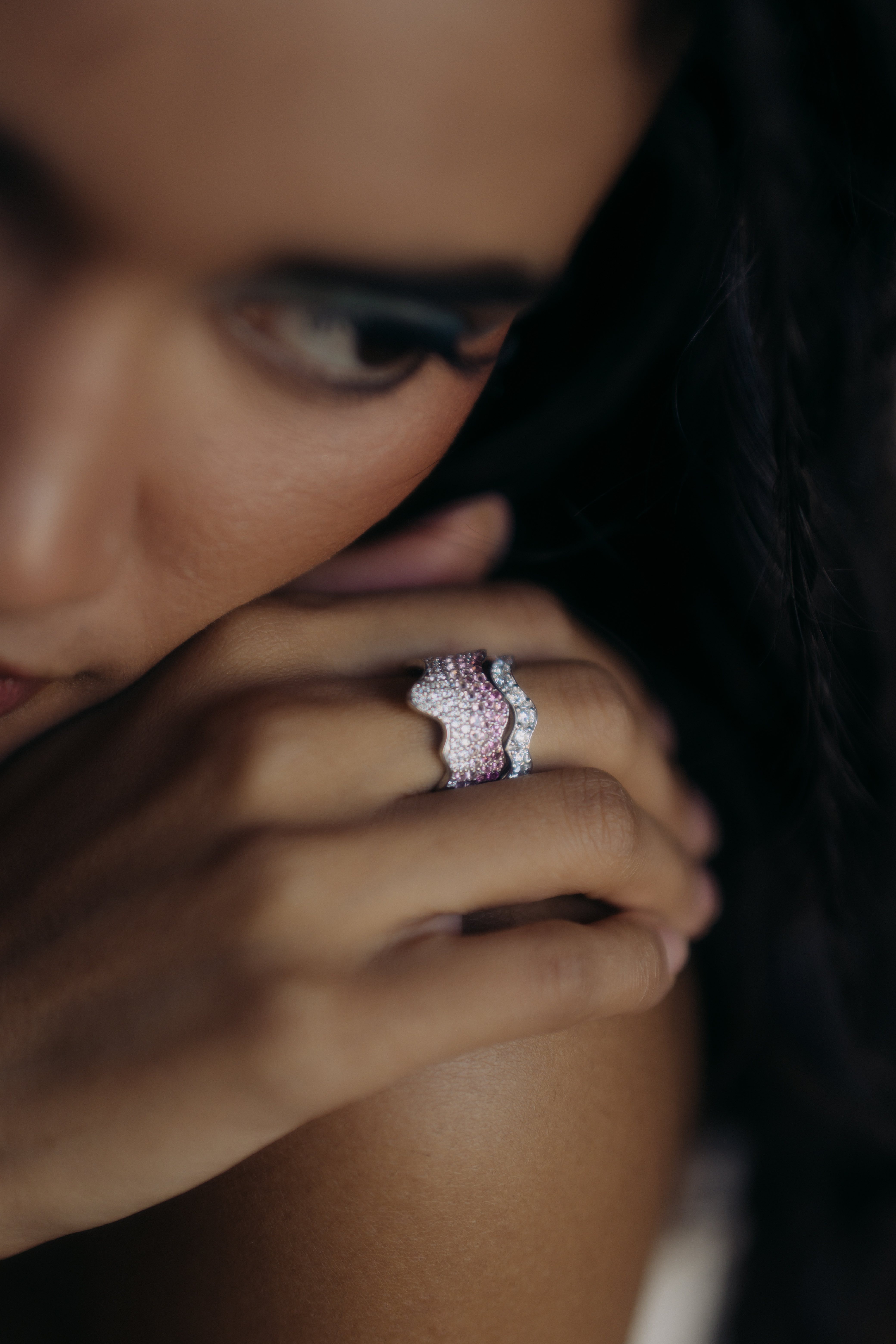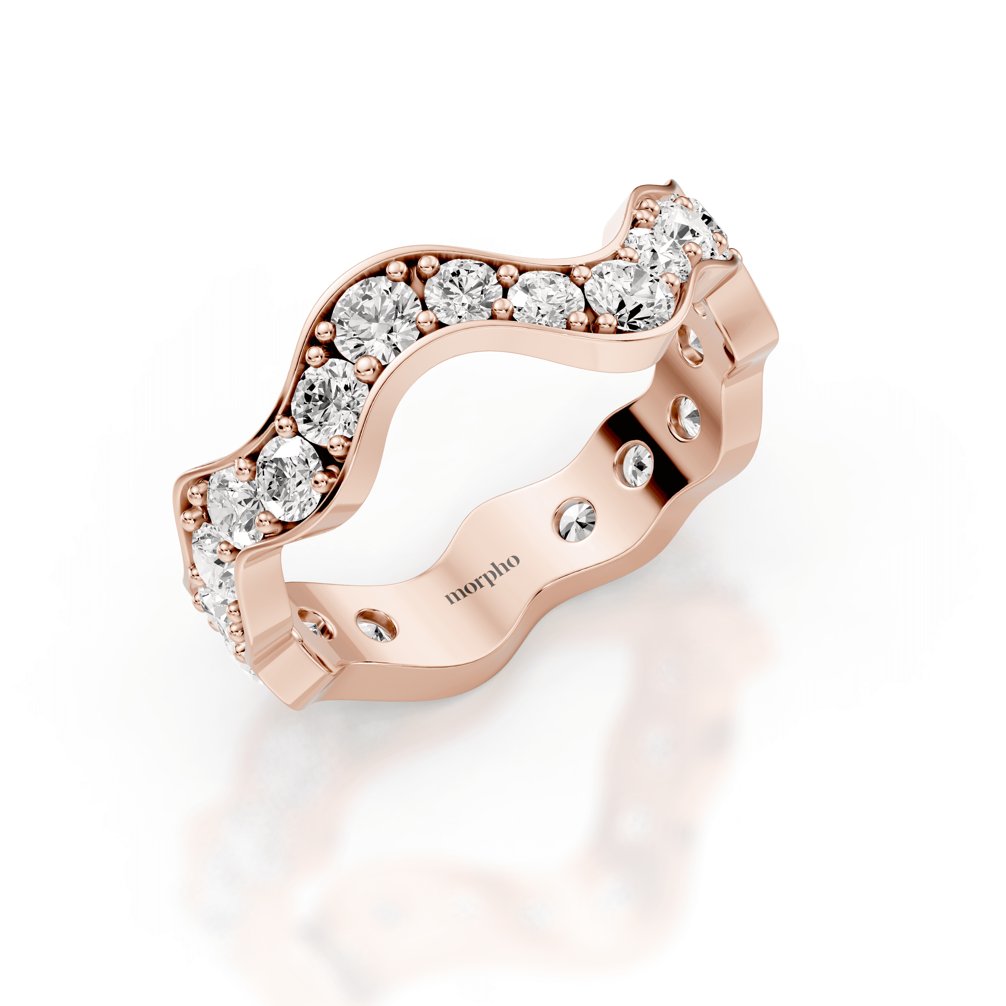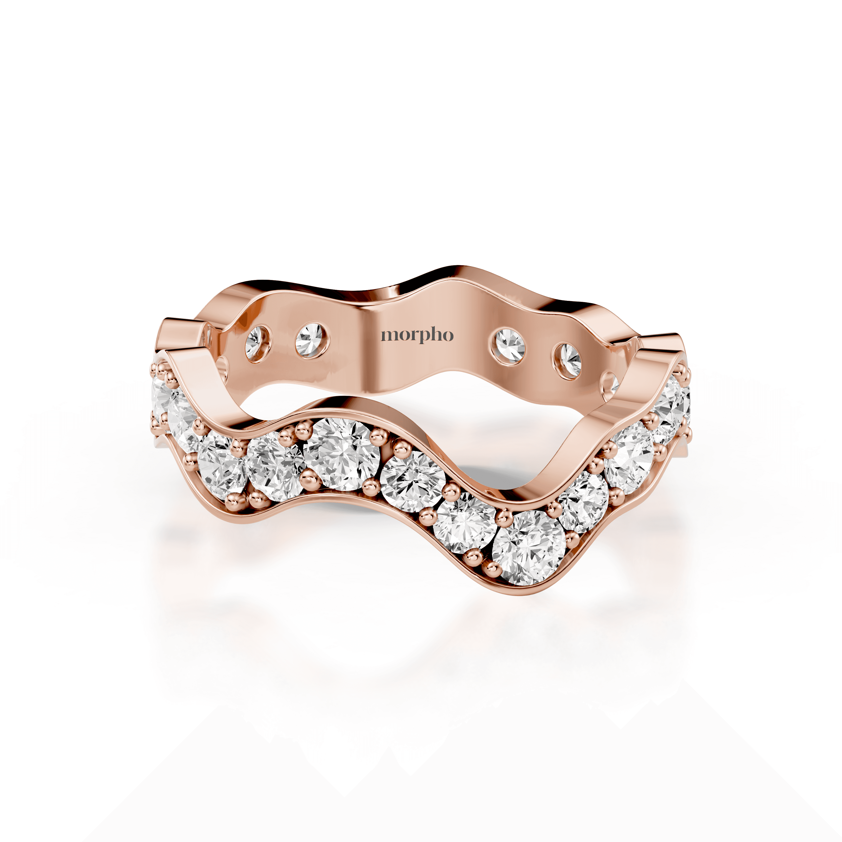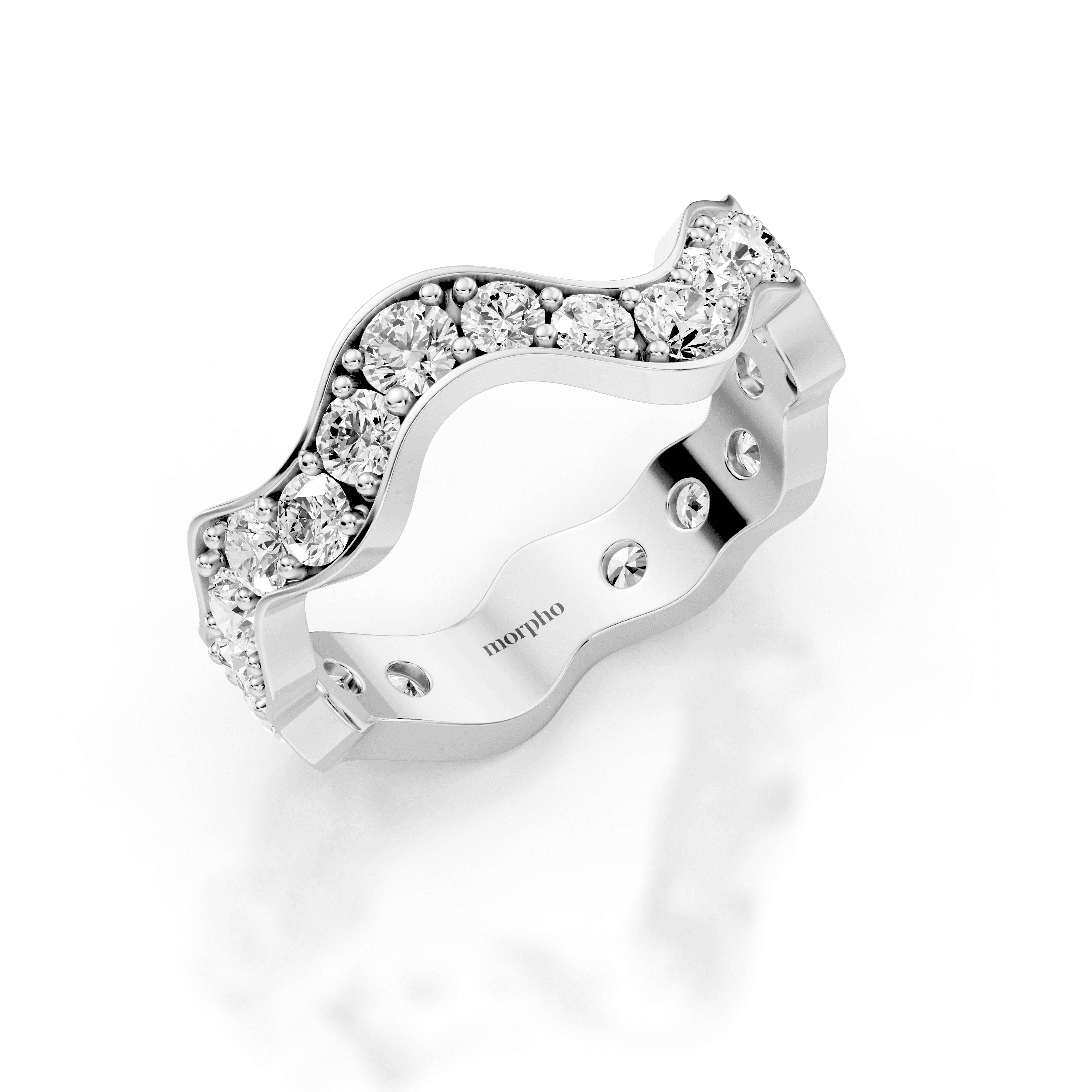 Low-profile stackable ring with full pavé-set round diamonds following a continuous curved silhouette.