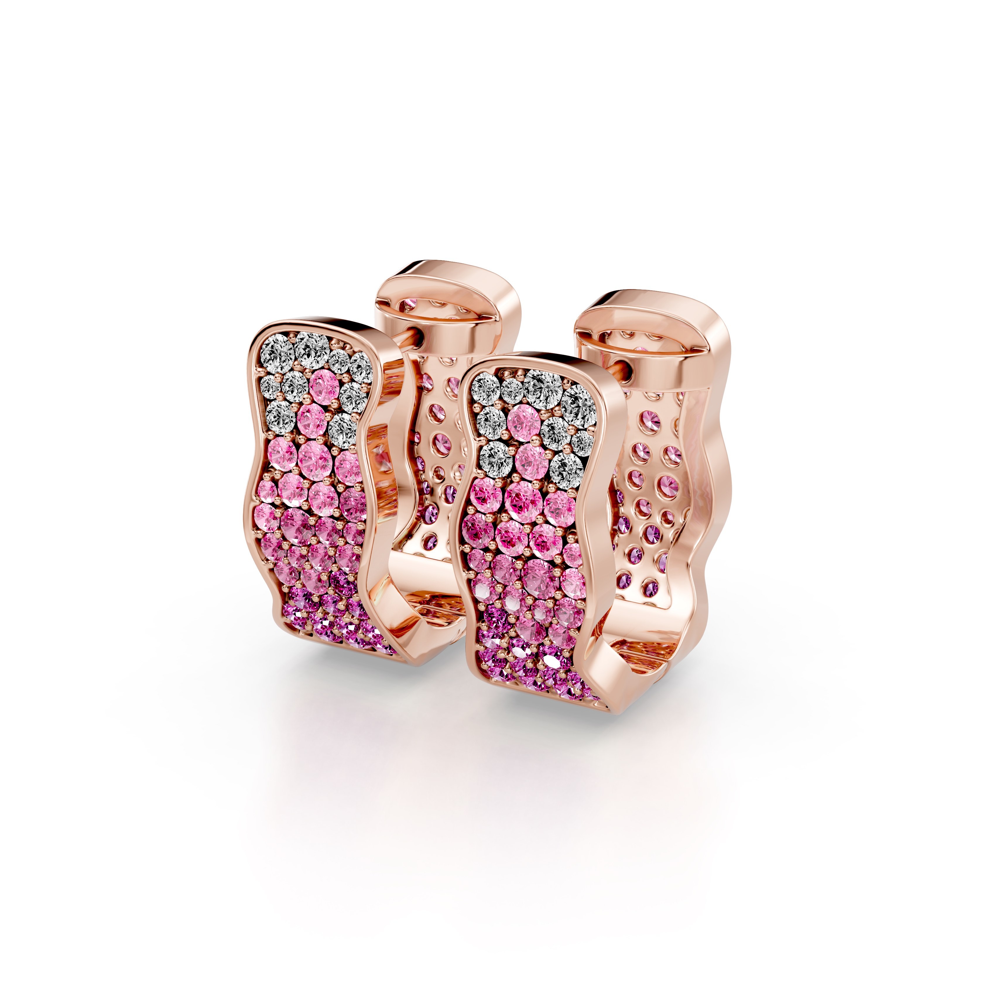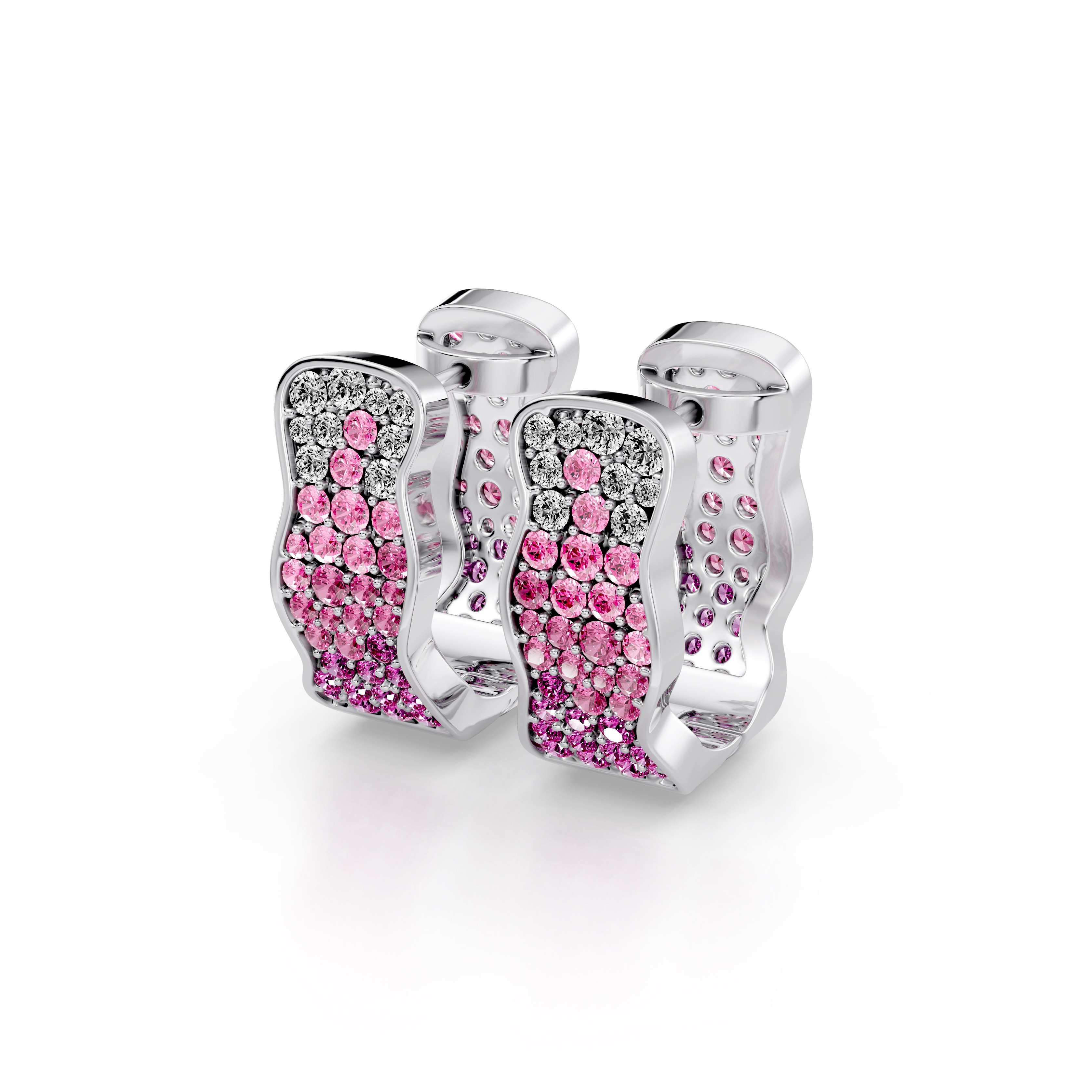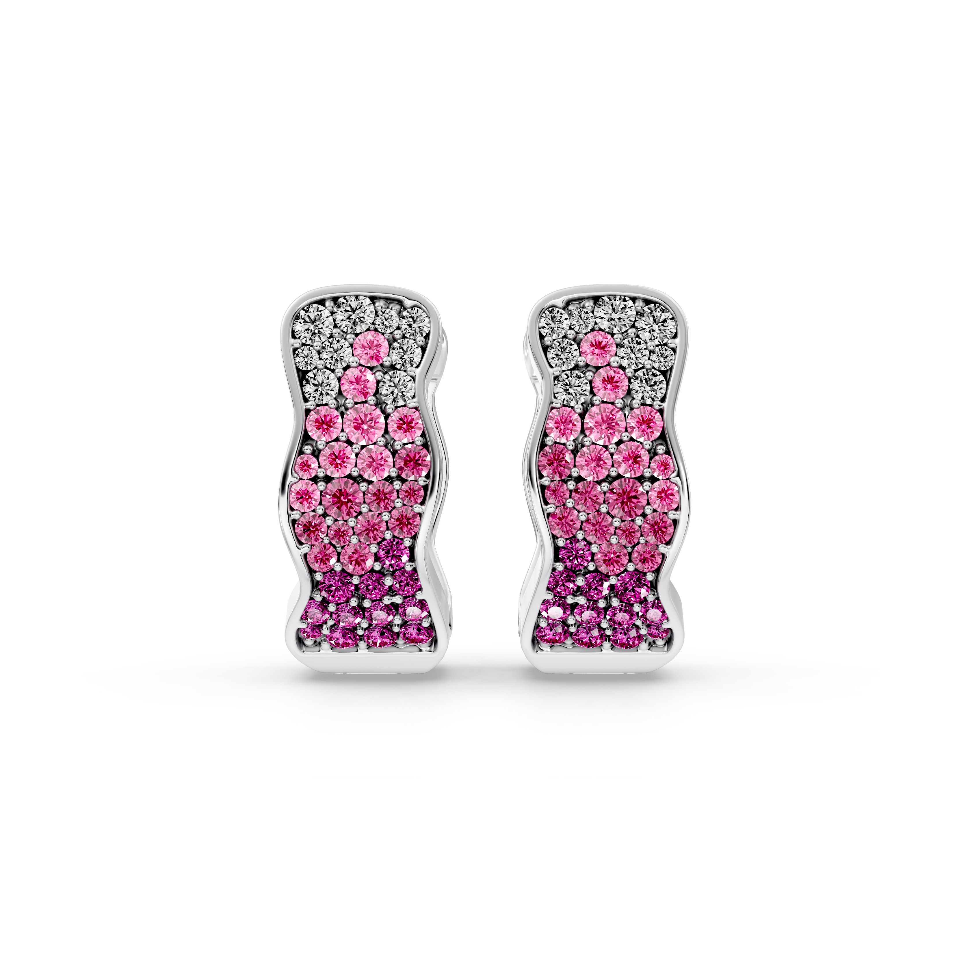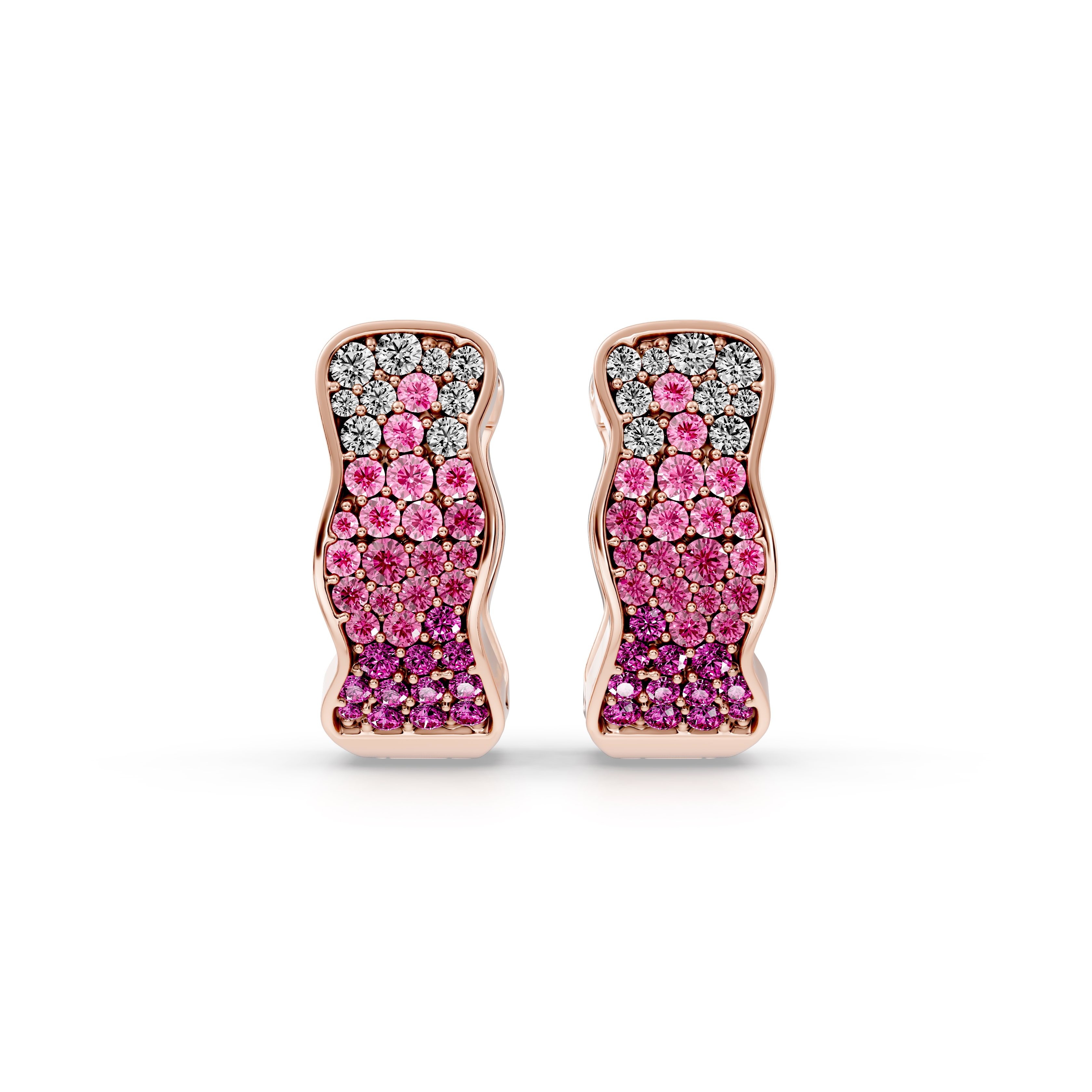 Soft-contour hoop earrings fully pavé-set with alternating light and dark pink round tourmalines.