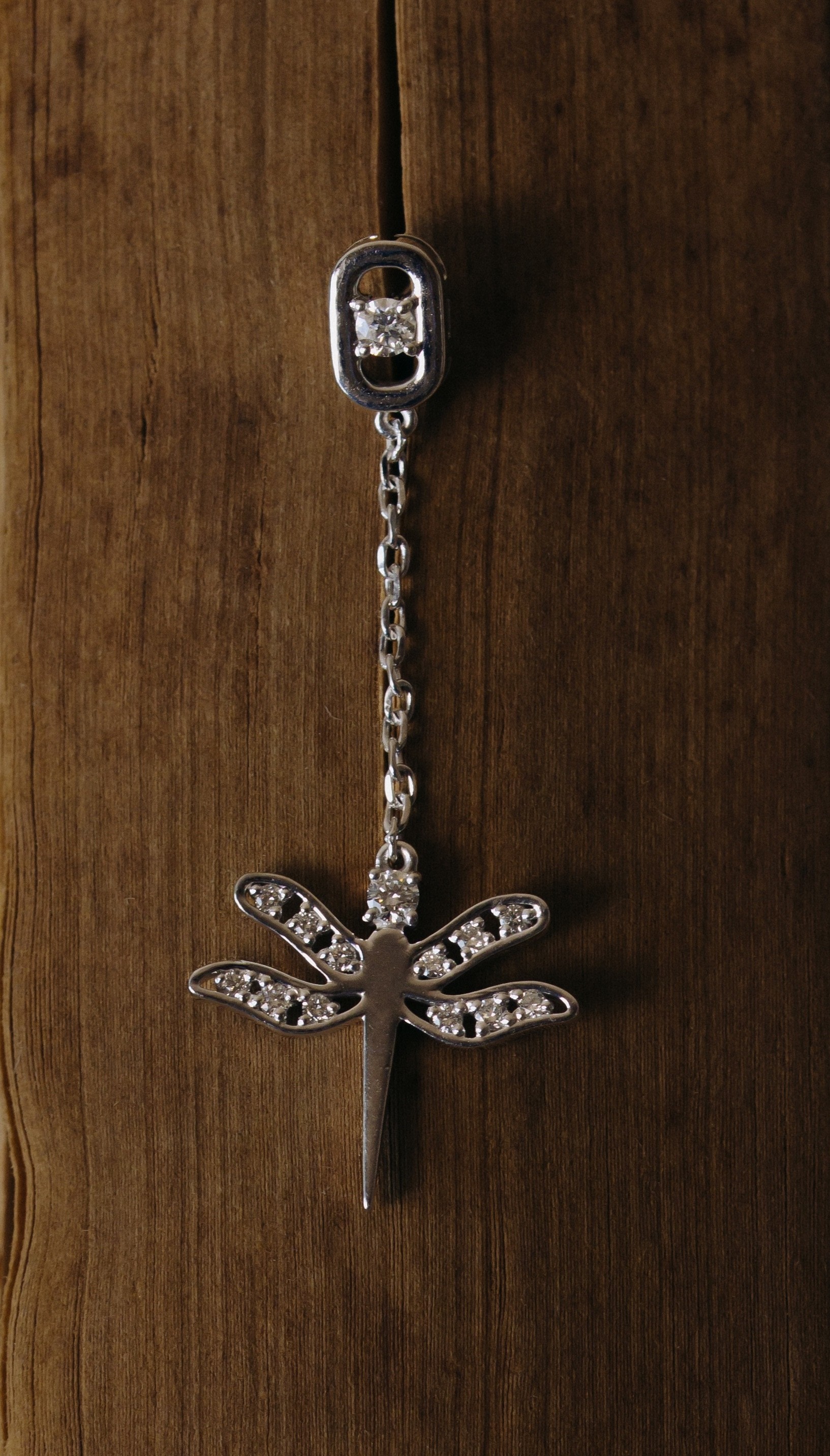 Linear chain earrings with pavé dragonflies and bezel top link
