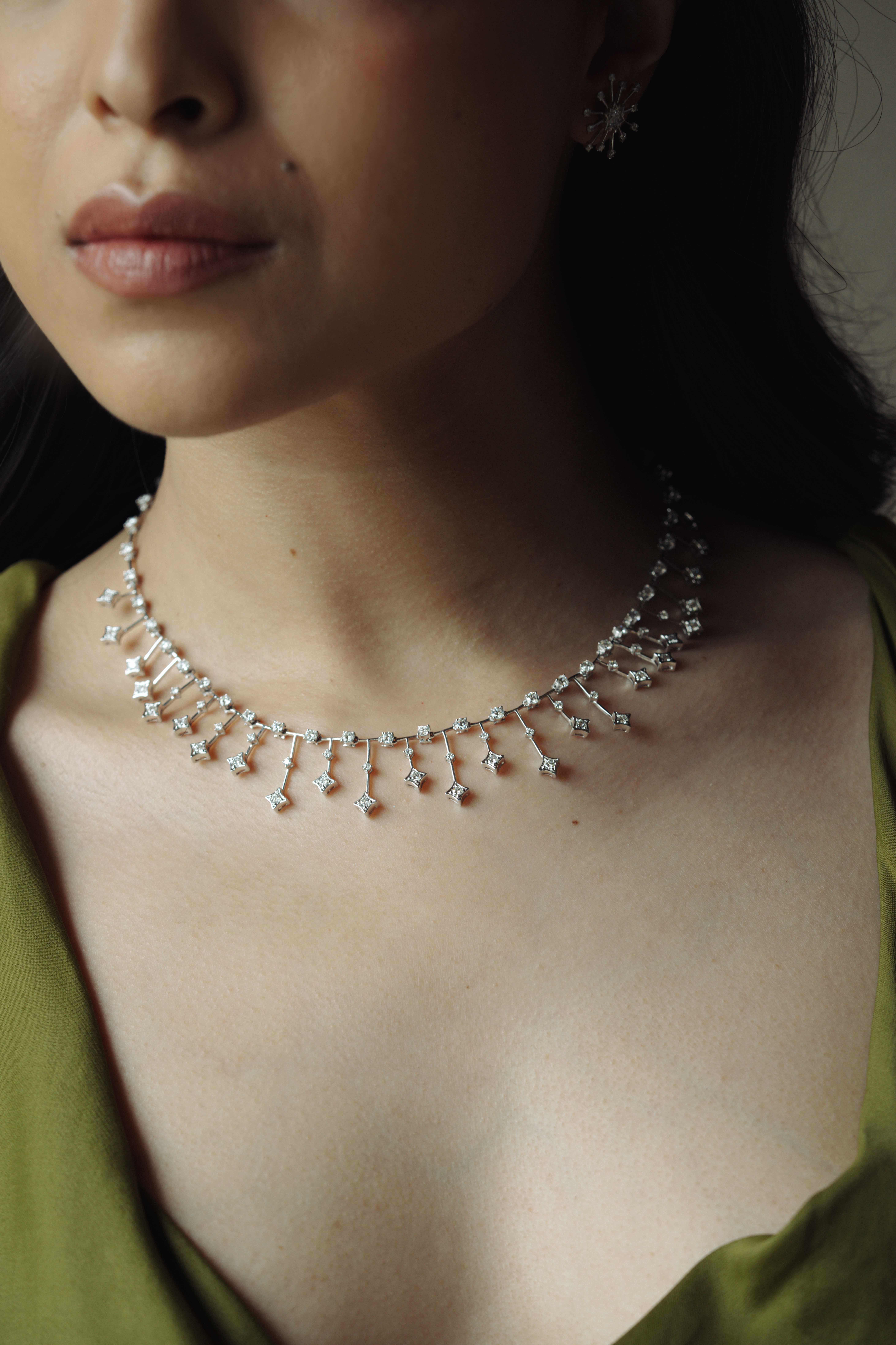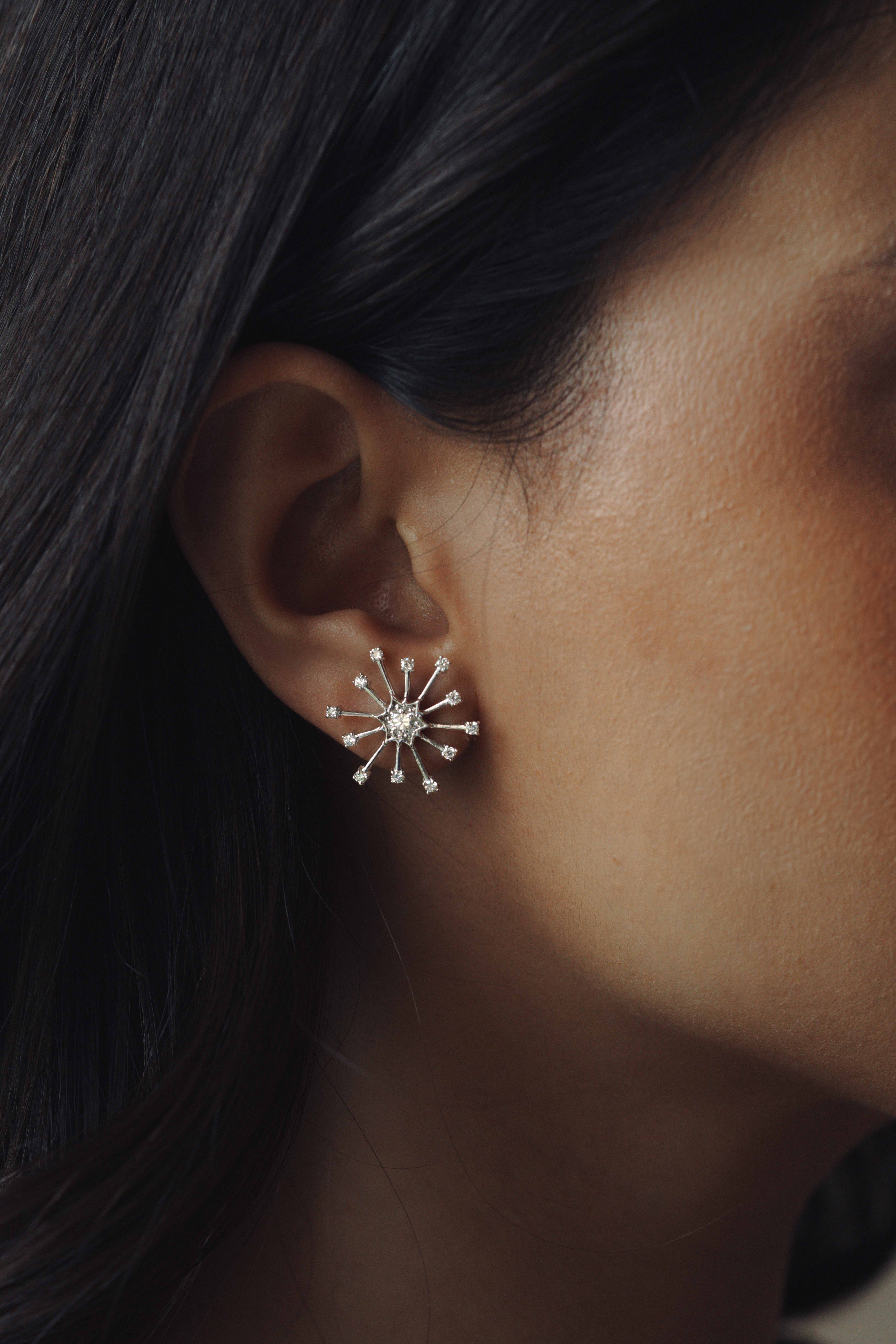 Stud earrings featuring starburst forms with central diamonds and radiating prong-set accents.