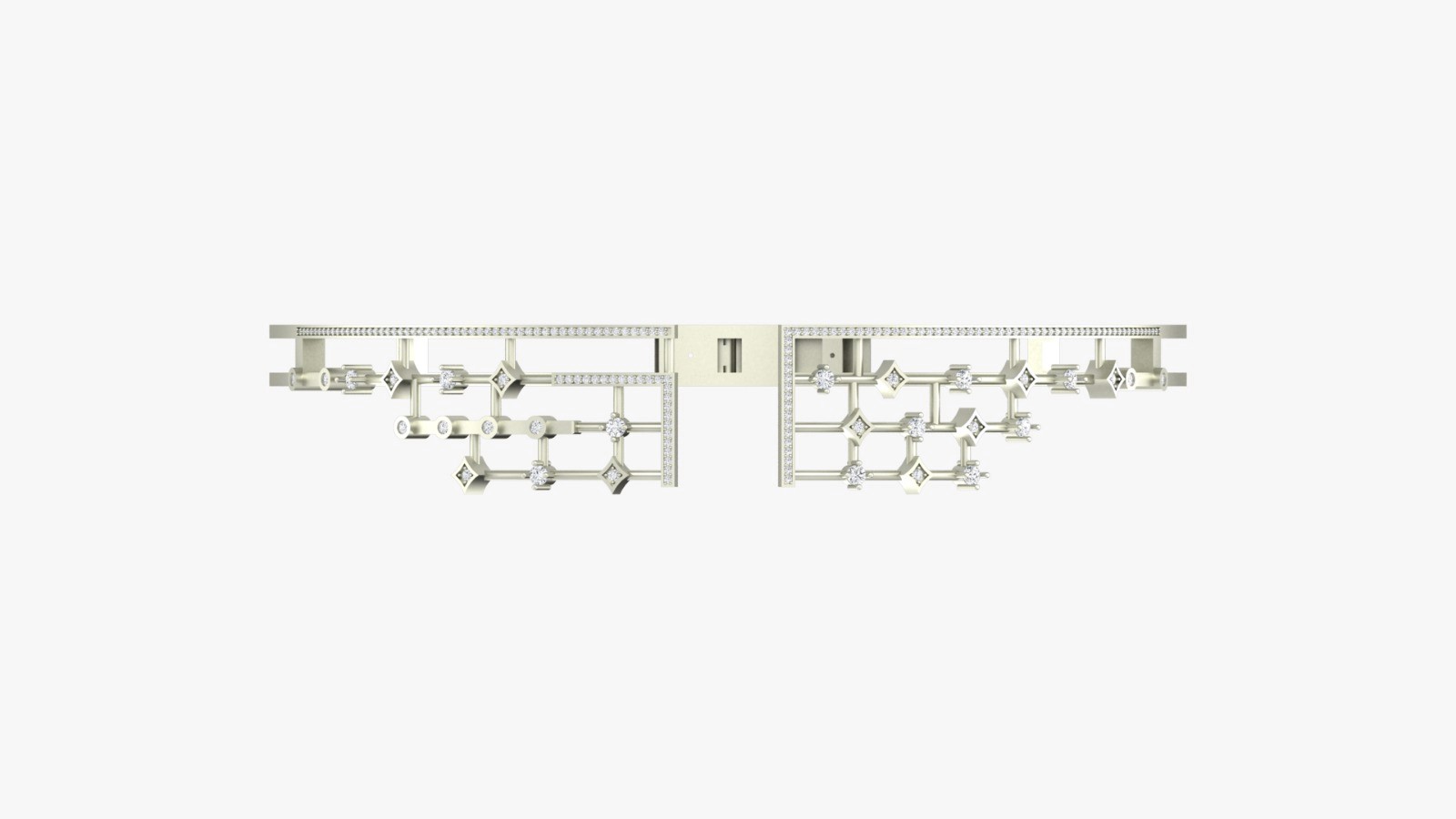 Very stiff choker constructed with geometric diamond-set panels designed to hold a sculptural shape.